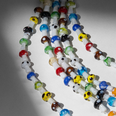 Стеклянные бусины в форме разноцветных грибочков из стекла. Размер бусин на нити варьируется от 15-17мм (+/- 0,5мм).