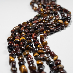 Тигровый глаз натуральный, бусины неправильной преимущественно округлой формы, размер 7-10мм. Возможны неровности, микротрещинки, вкрапления другого цвета.
