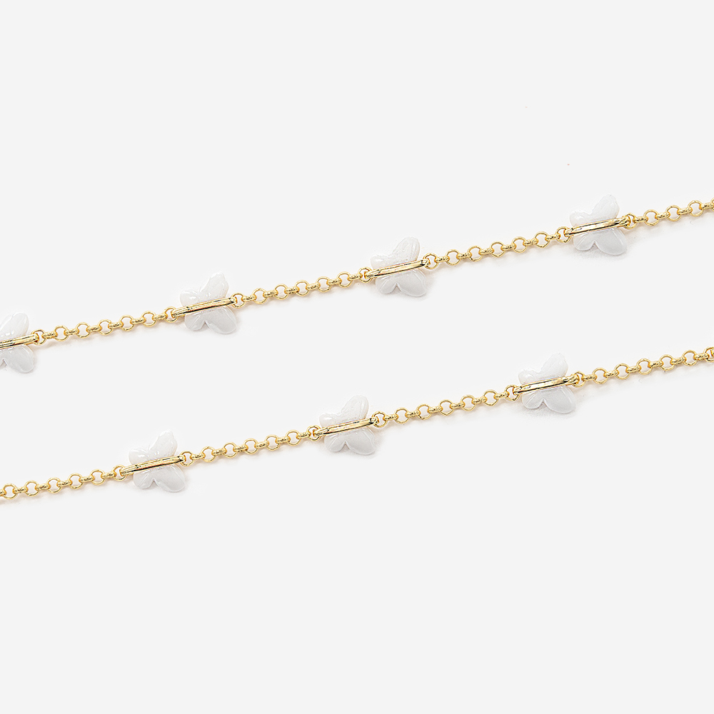 Цепь с дополнительным защитным покрытием. Размер звена - классическое Ролло - 2,5мм, белая бабочка из акрила 9,5мм, позолота.