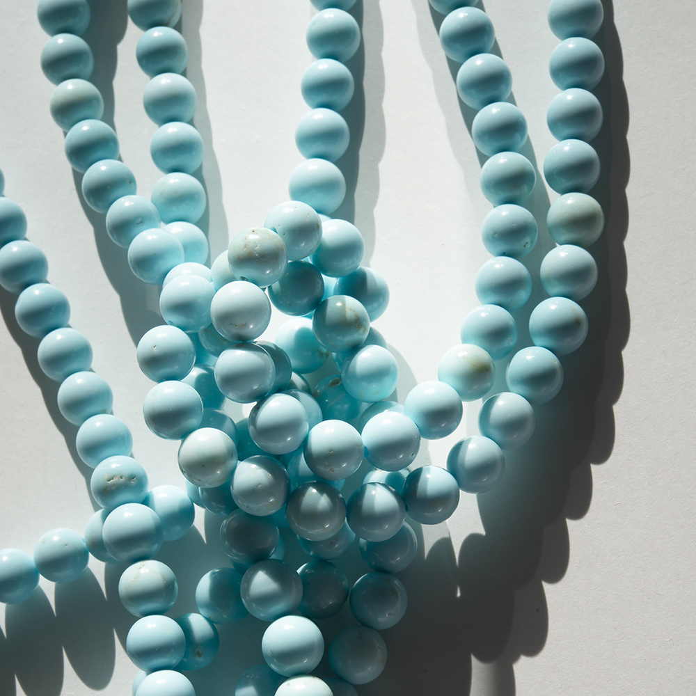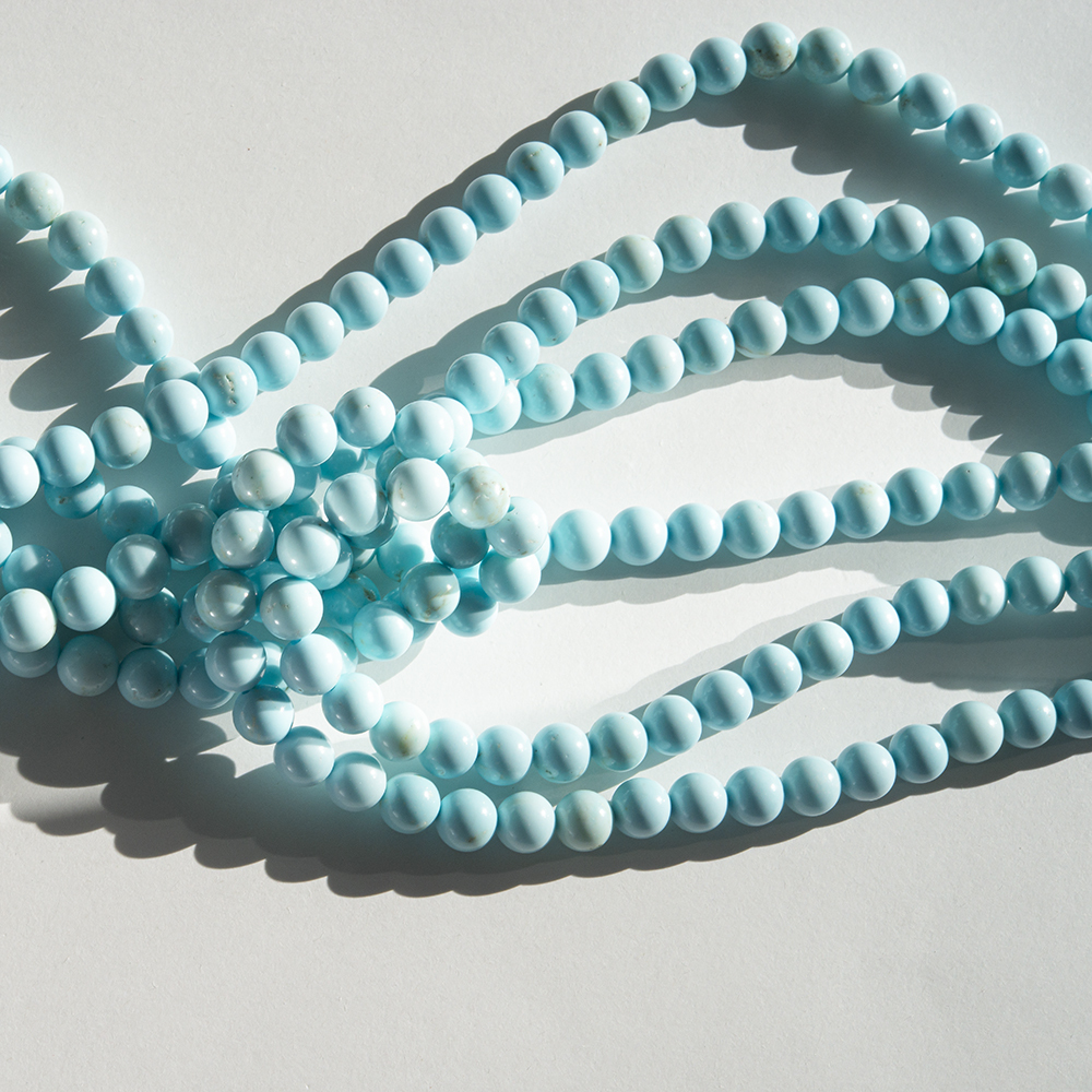 Природная имитация натуральной бирюзы из туркенита нежного оттенка в форме гладкого шара.