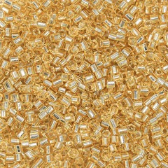 Японский бисер TOHO Bugle - стеклярус - оттенок №22F Silver-Lined Frosted Light Yellow Amber (Светлый желтый янтарь) - с внутренним серебрением, прозрачный матовый, золотой.