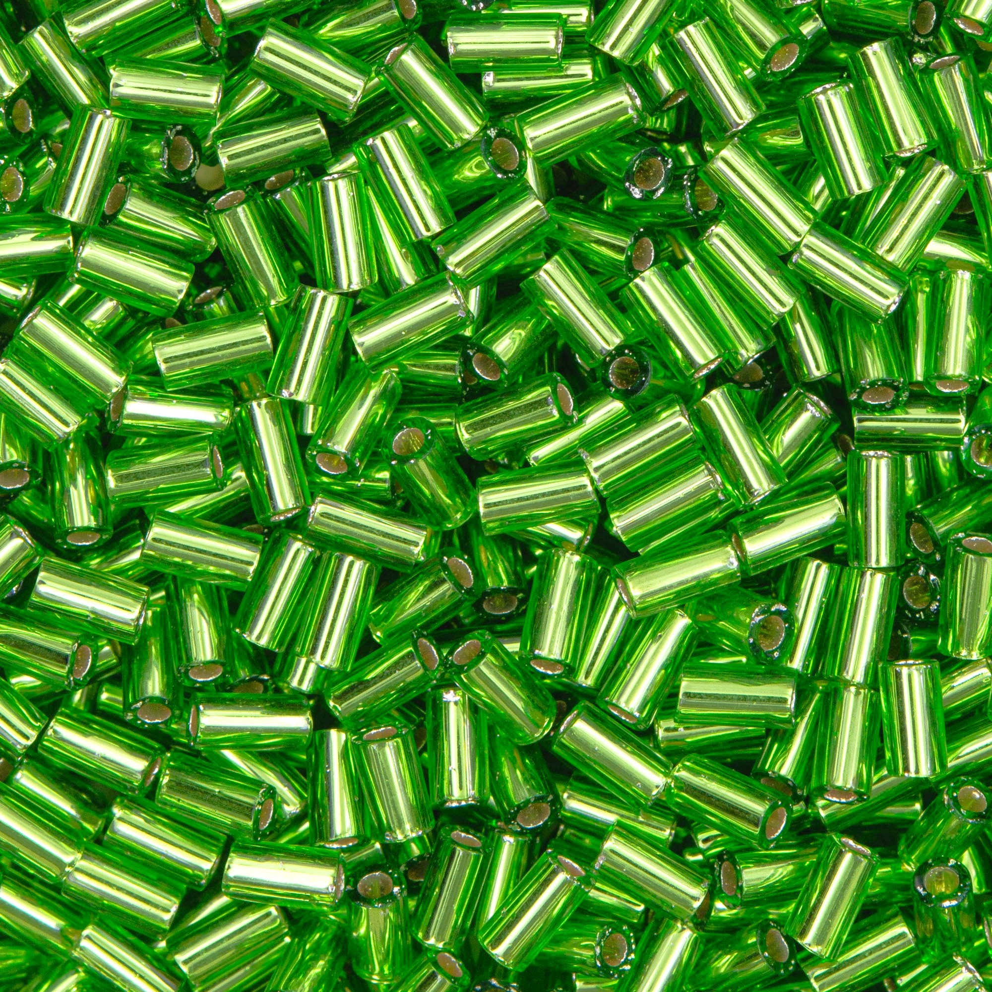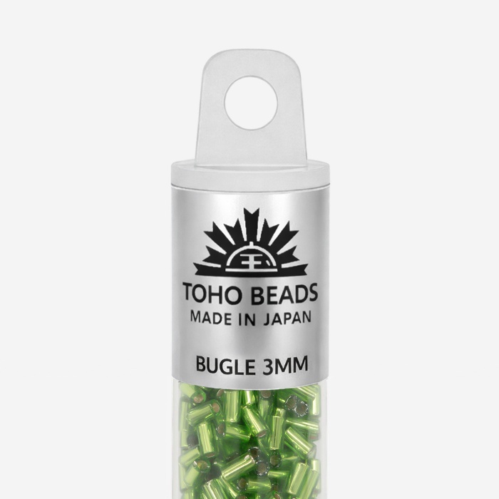 Японский бисер TOHO Bugle - стеклярус - оттенок №27 Silver-Lined Peridot (Перидот) - с внутренним серебрением, прозрачный, зеленый.