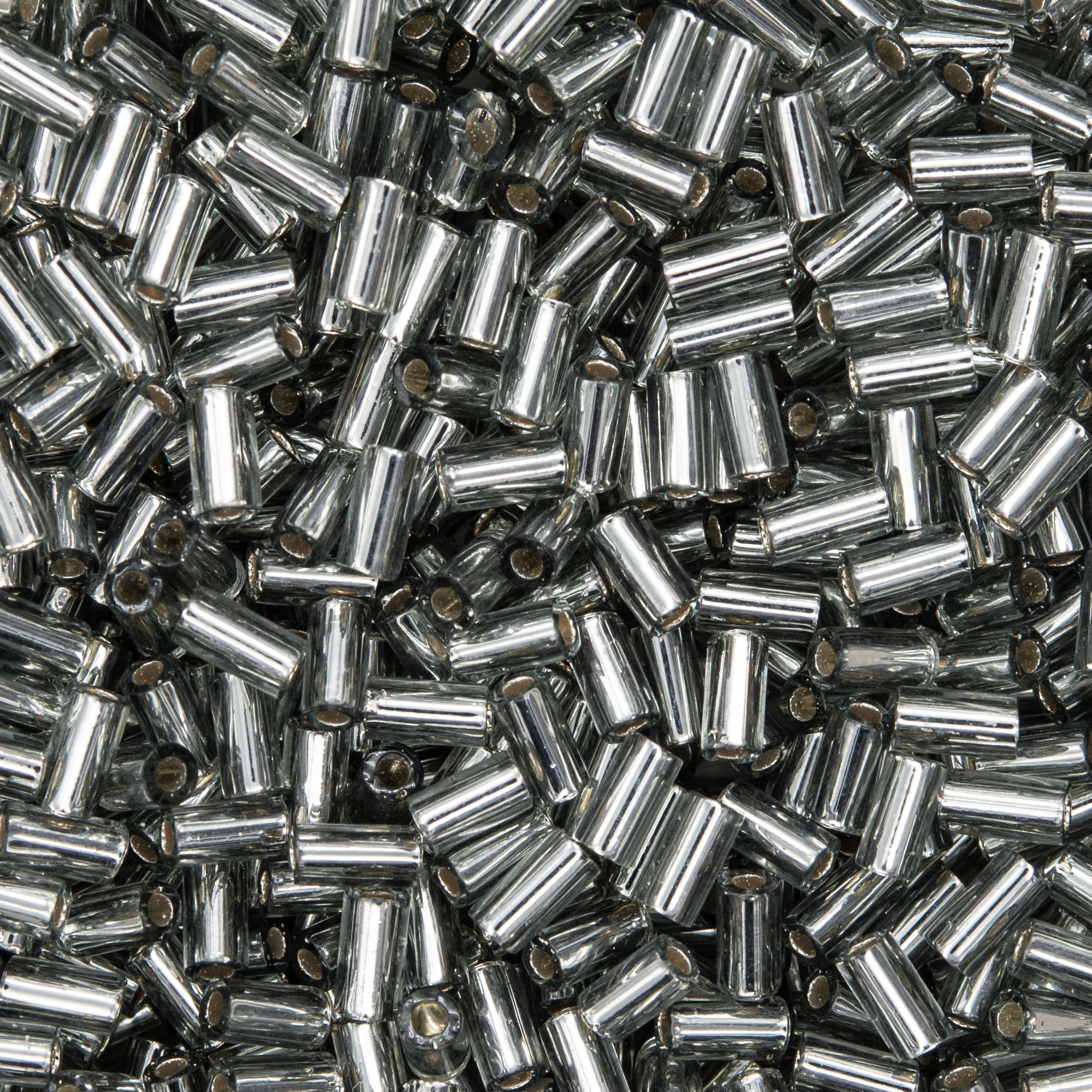 Японский бисер TOHO Bugle - стеклярус - оттенок №29 Silver-Lined Black Diamond (Черный бриллиант) - с внутренним серебрением, прозрачный, серебристый.