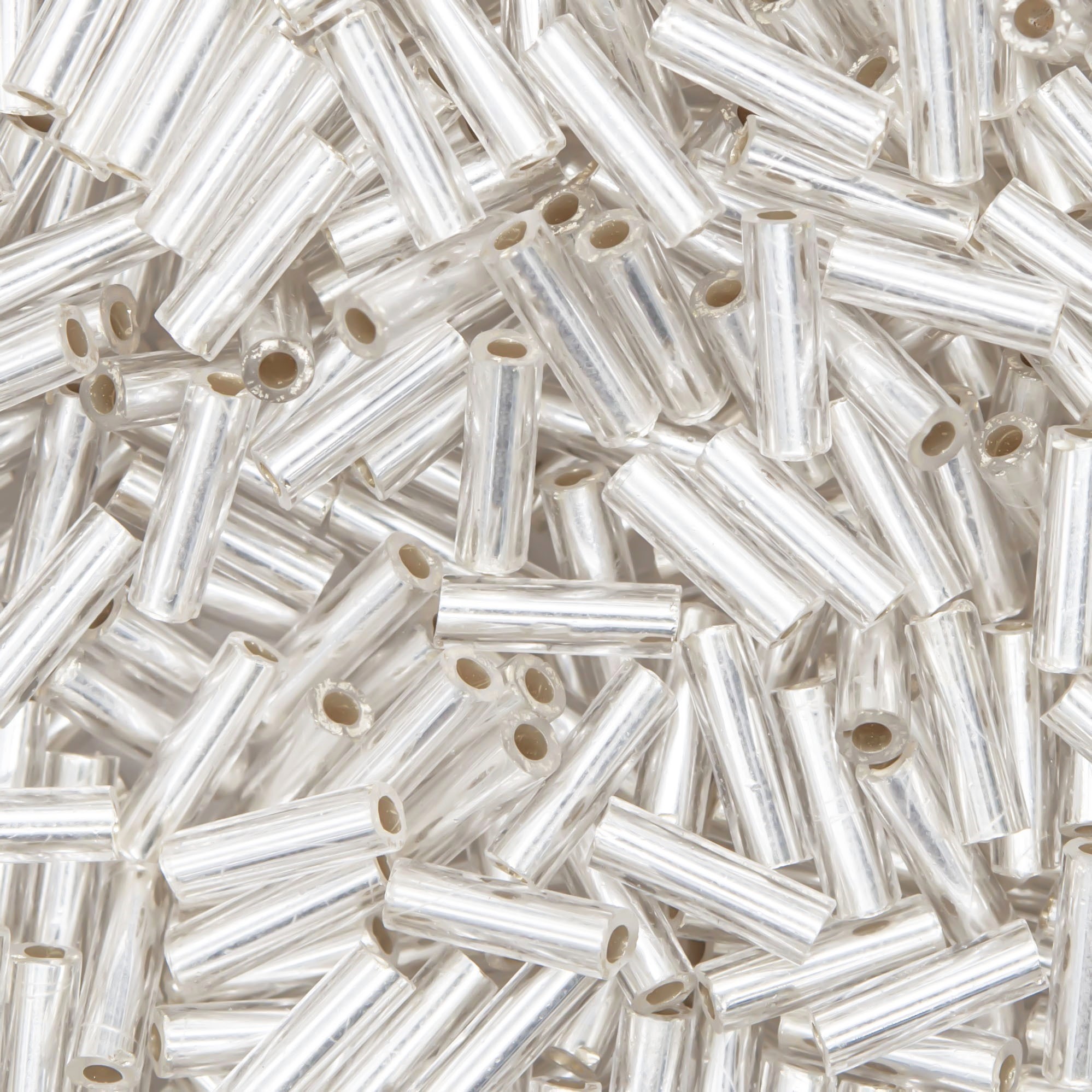Японский бисер TOHO Bugle - стеклярус - оттенок №21F Silver-Lined Frosted Crystal (Кристалл) - с внутренним серебрением, прозрачный матовый, белый.