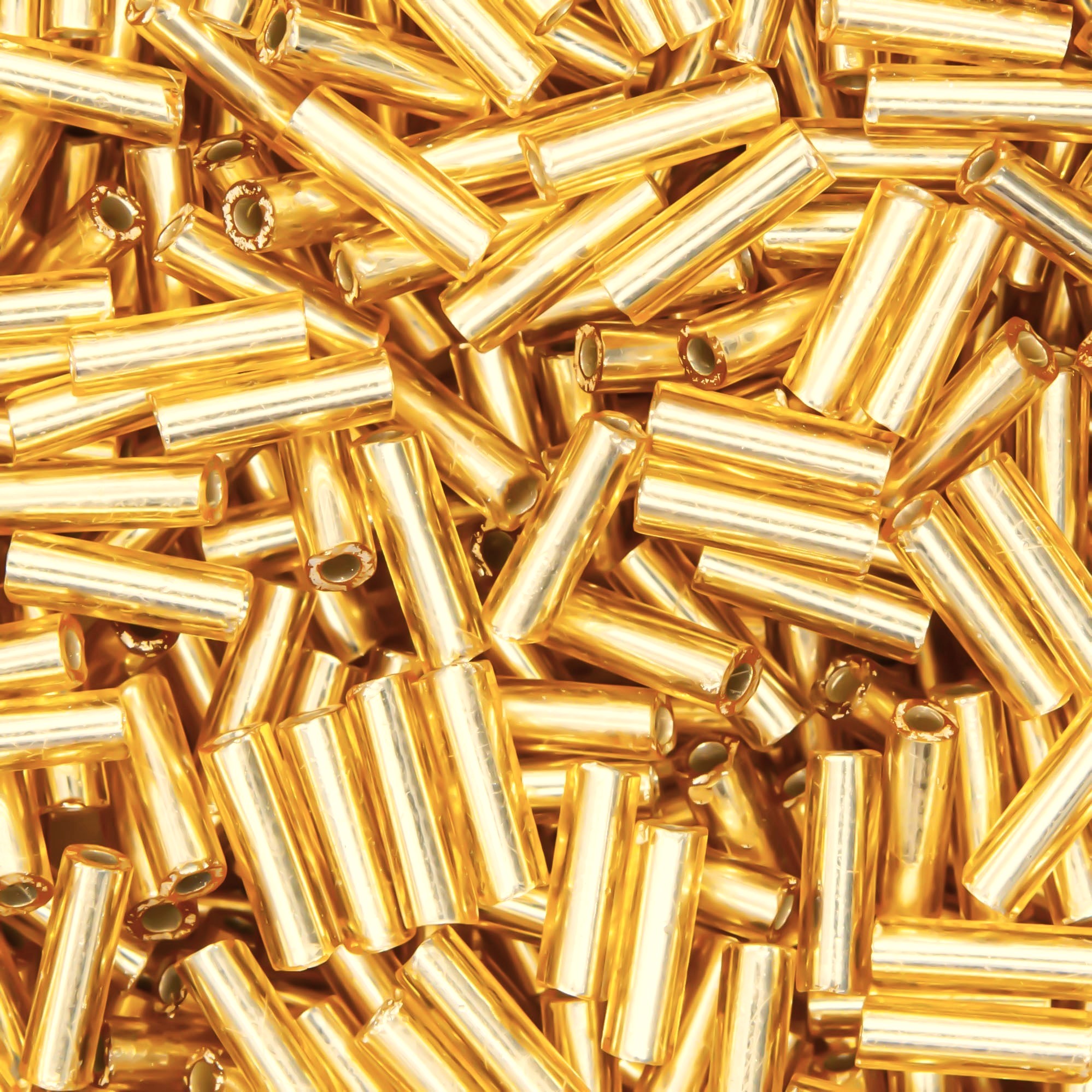 Японский бисер TOHO Bugle - стеклярус - оттенок №22F Silver-Lined Frosted Light Topaz (Светлый топаз) - с внутренним серебрением, прозрачный матовый, золотой.