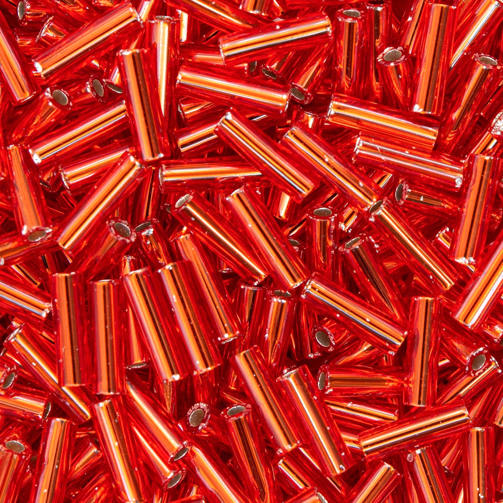 Японский бисер TOHO Bugle - стеклярус - оттенок №25 Silver-Lined Light Siam Ruby (Светлый сиамский рубин) - с внутренним серебрением, прозрачный, красный.