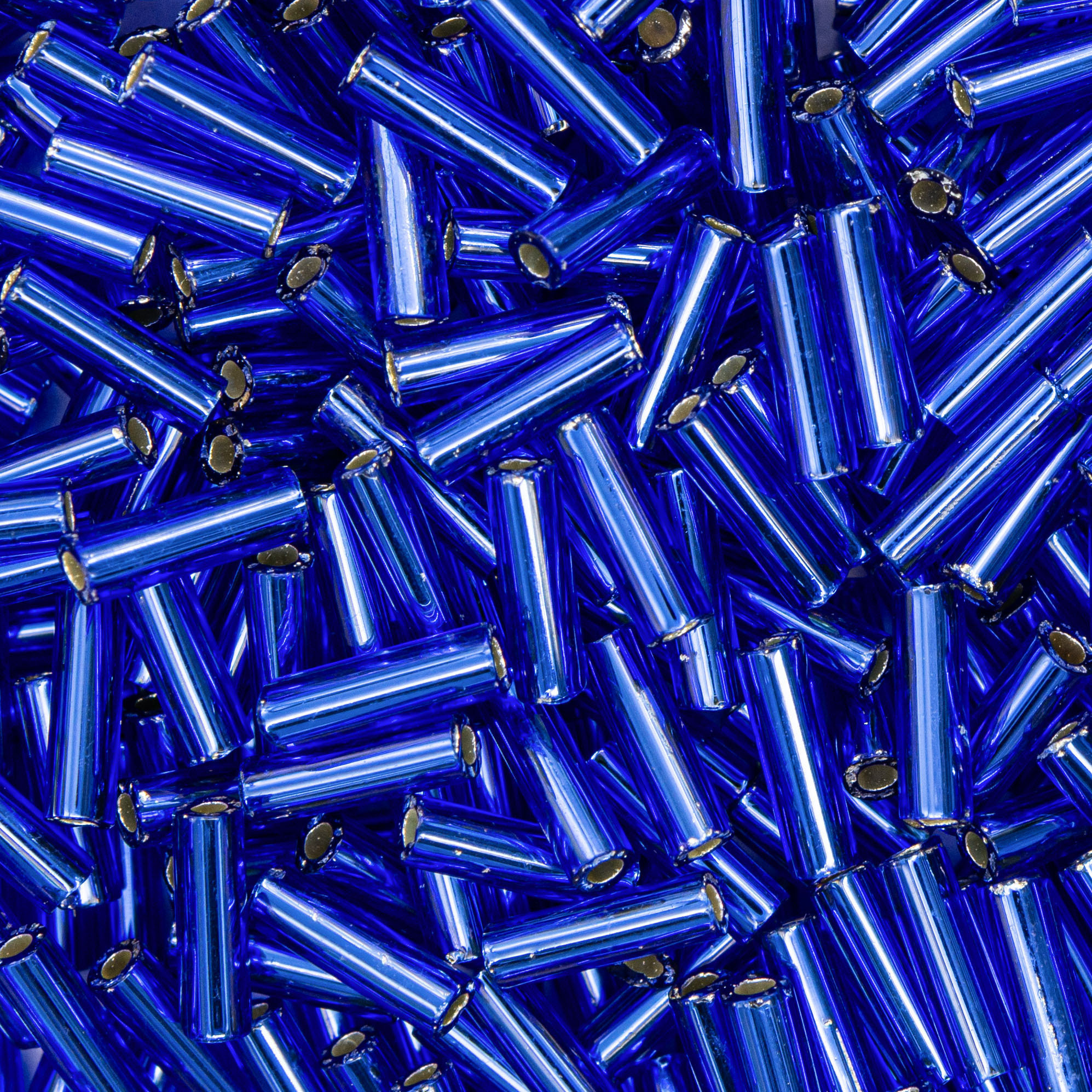Японский бисер TOHO Bugle - стеклярус - оттенок №28 Silver-Lined Cobalt (Кобальт) - с внутренним серебрением, прозрачный, синий.