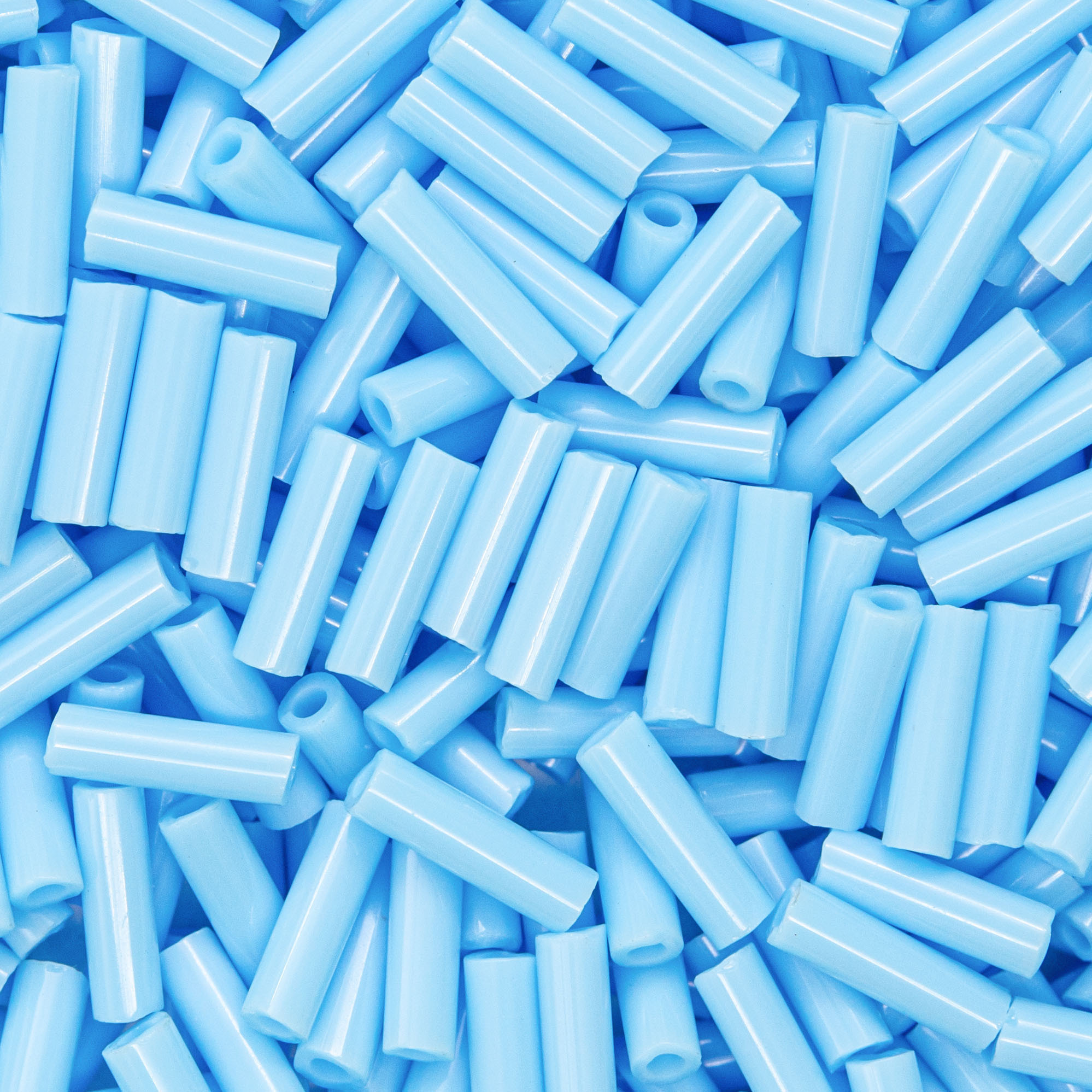 Японский бисер TOHO Bugle - стеклярус - оттенок №43 Opaque Blue Turquoise (Голубая бирюза) - непрозрачный глянцевый, голубой.
