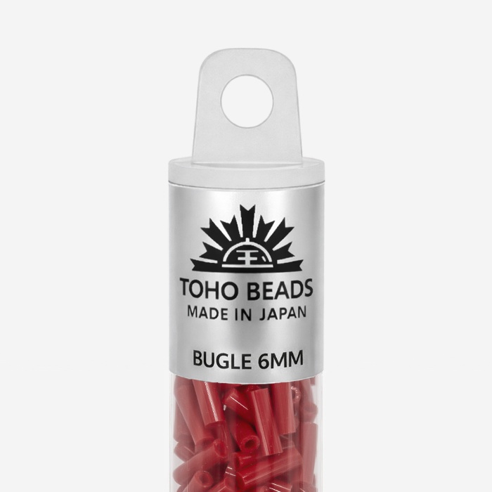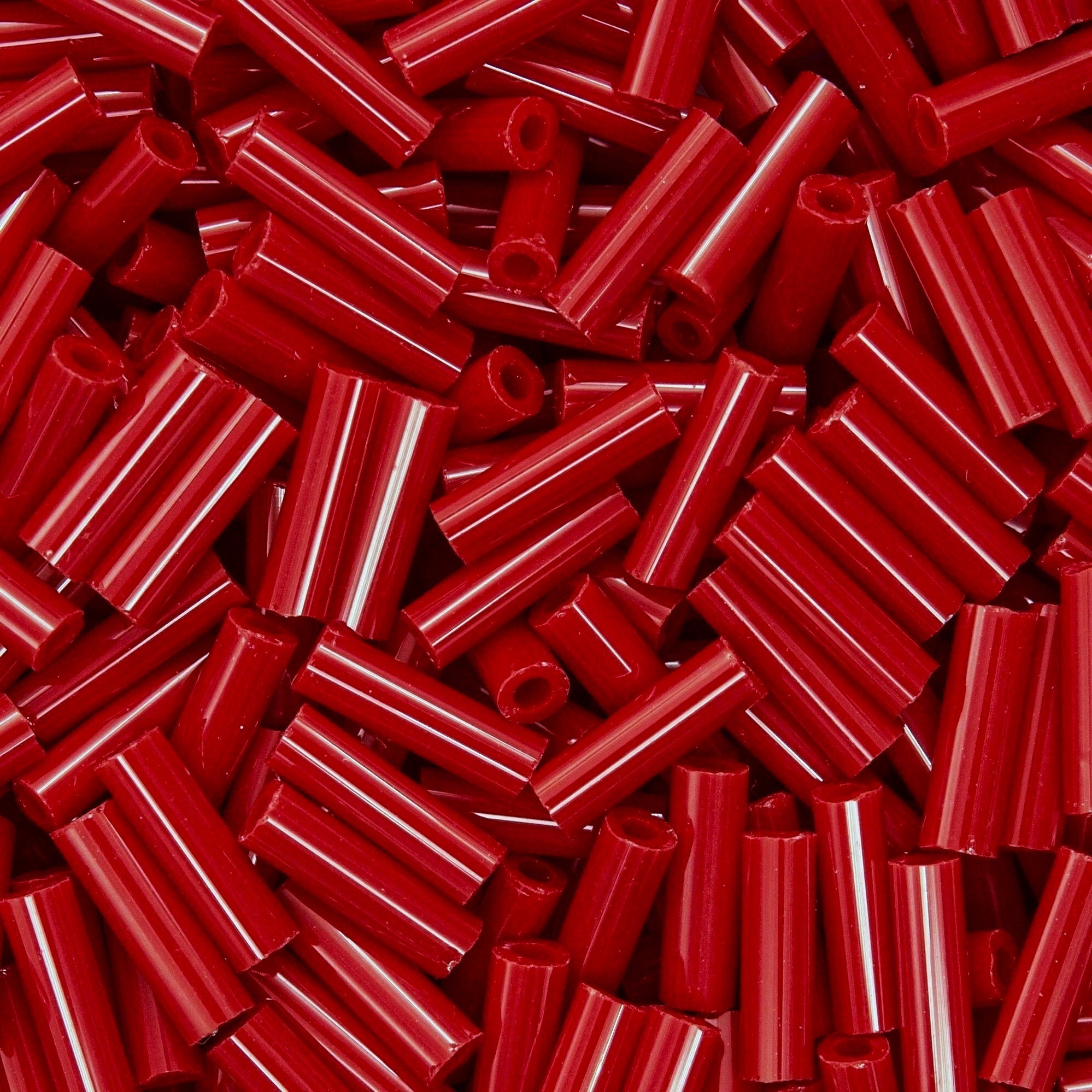 Японский бисер TOHO Bugle - стеклярус - оттенок №45 Opaque Pepper Red (Красный перец) - непрозрачный глянцевый, красный.