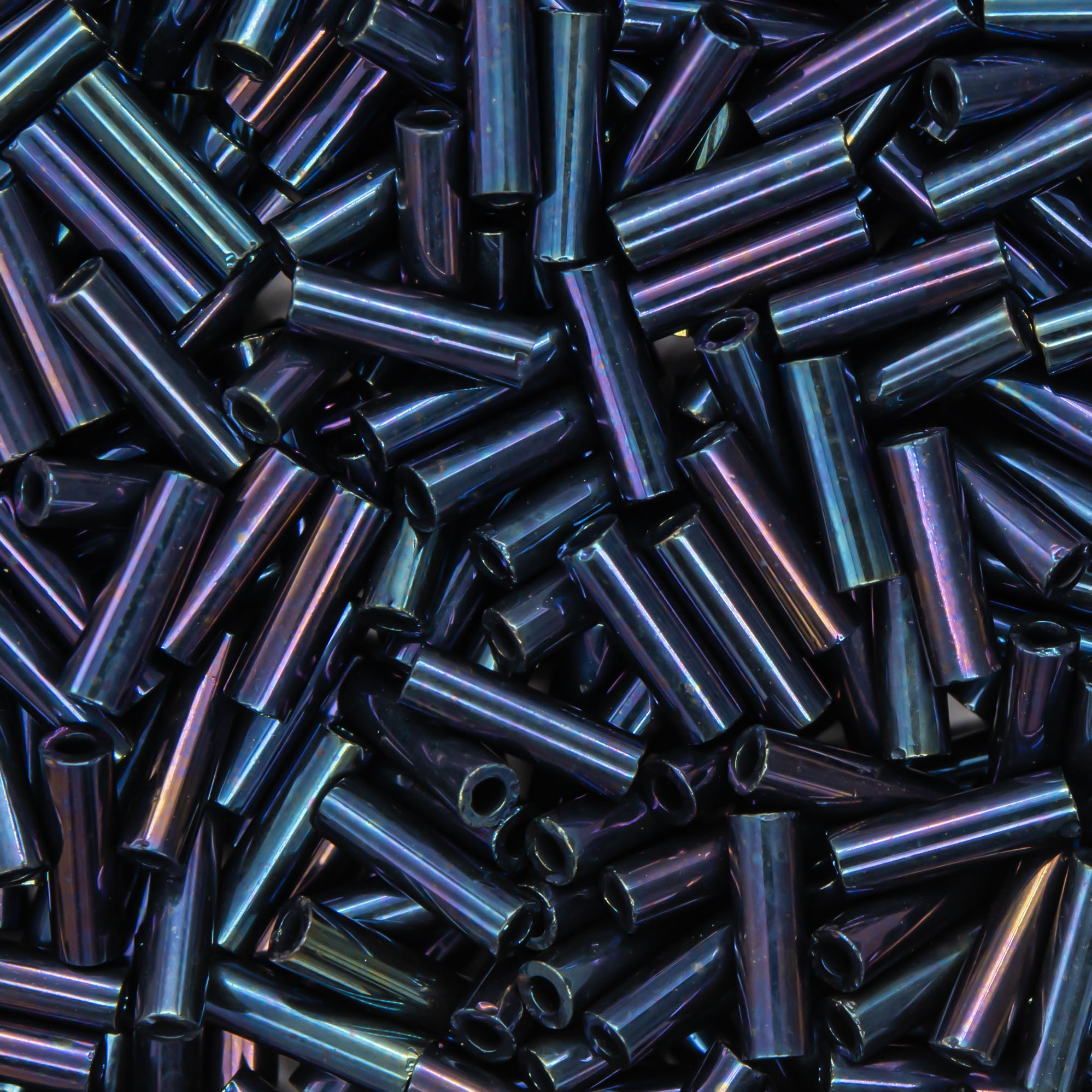 Японский бисер TOHO Bugle - стеклярус - оттенок №82 Metallic Nebula (Туманный) - металлизированный, непрозрачный глянцевый, металлический синий.