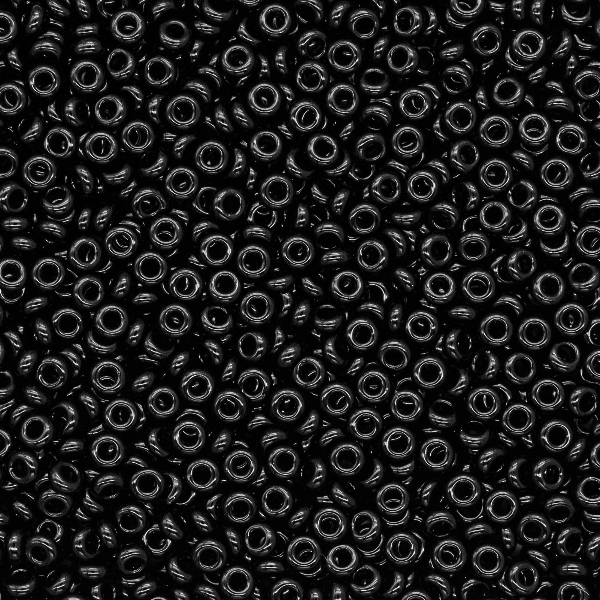 Японский бисер TOHO Demi Round оттенок №49 Opaque Jet (Черный янтарь) - непрозрачный глянцевый, черный.