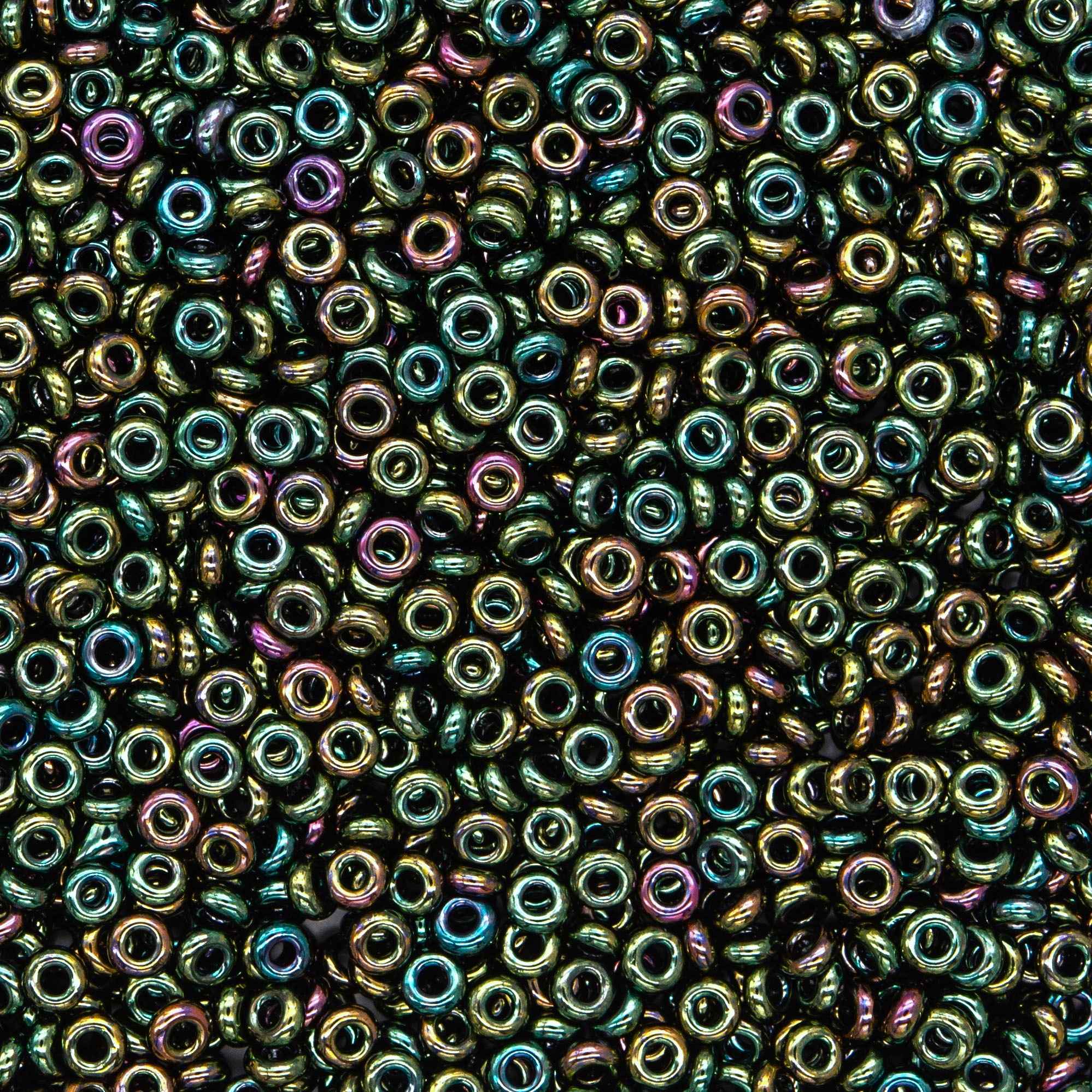 Японский бисер TOHO Demi Round оттенок №508 Higher-Metallic Iris Olivine (Ирис Оливин) - металлизированный, непрозрачный глянцевый, металлический радужный.