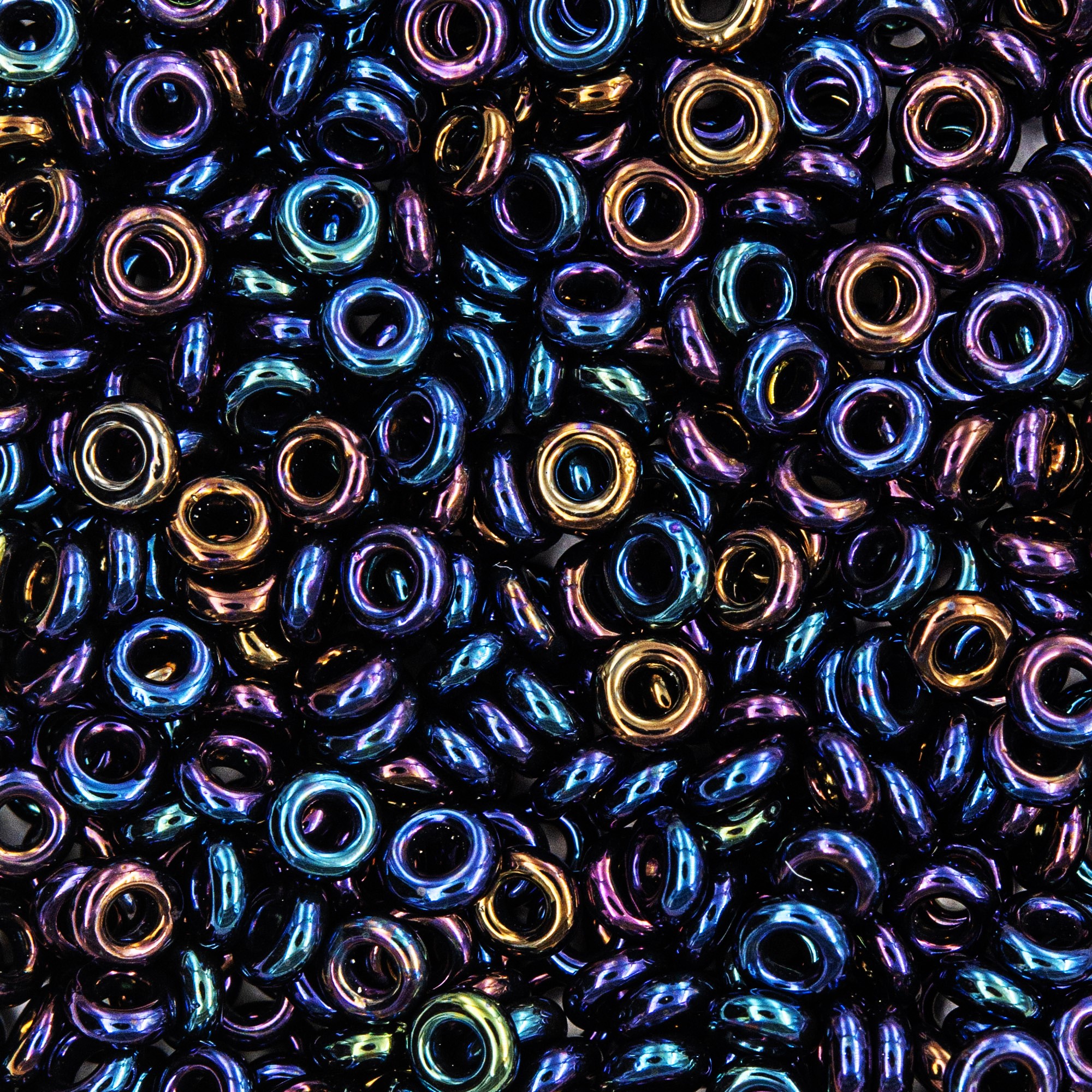 Demi Round - "пончики". Размер бисерины около 3*1,2мм, отверстие 0,8мм, в одном грамме около 80 штук.