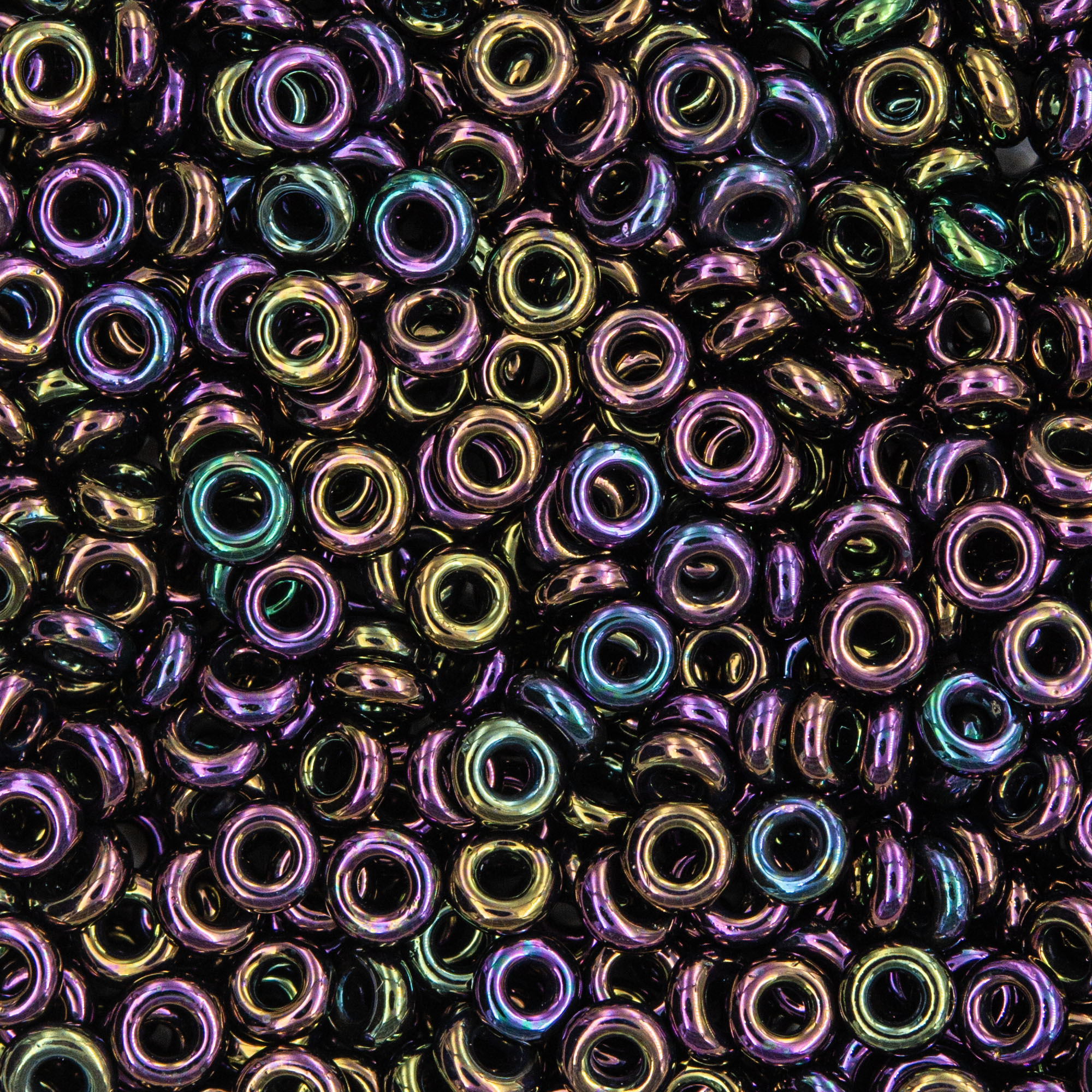 Demi Round - "пончики". Размер бисерины около 3*1,2мм, отверстие 0,8мм, в одном грамме около 80 штук.