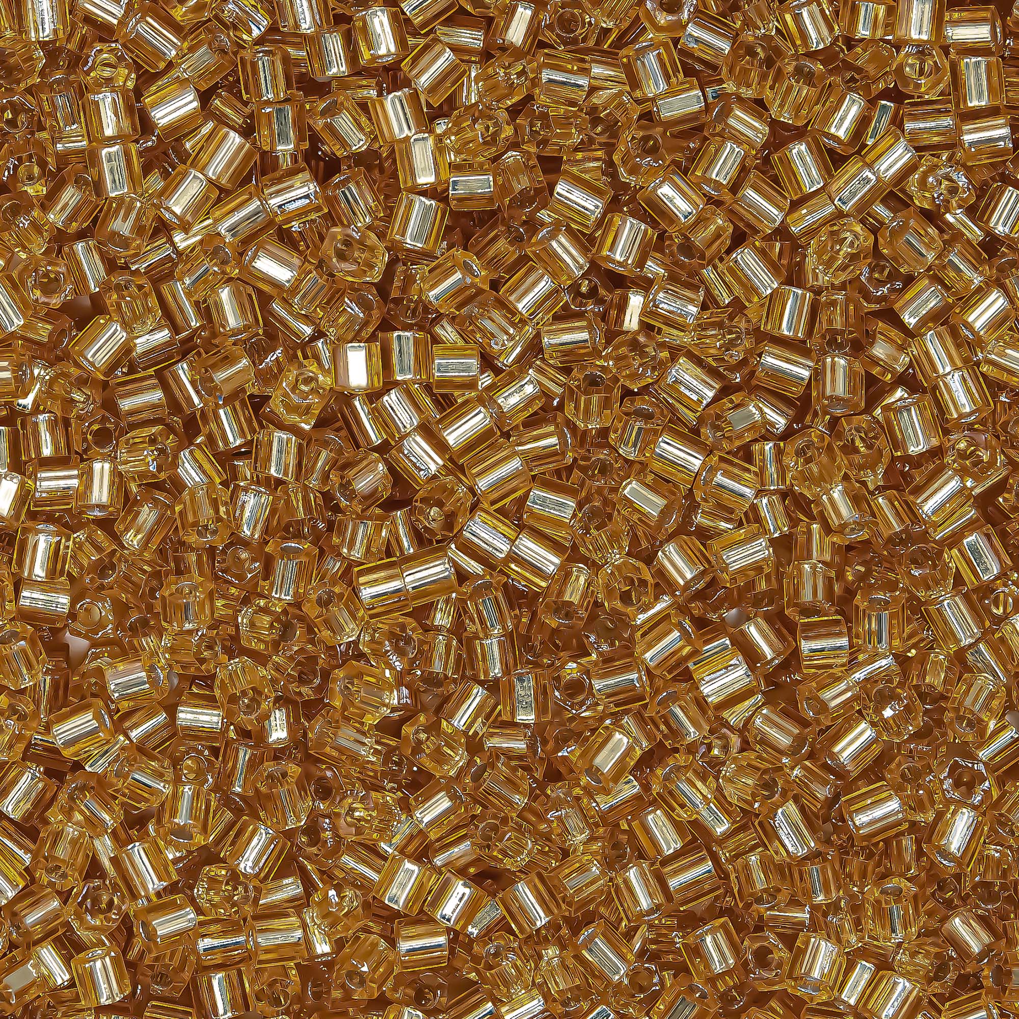 Японский бисер TOHO Hexagon - шестиугольный граненый, оттенок №22B Silver-Lined Medium Topaz (Средний топаз) - прозрачный с внутренним серебрением, золотой.