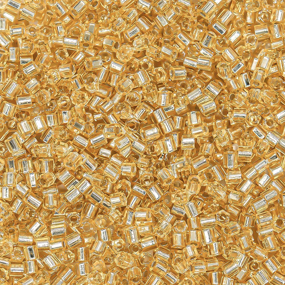 Японский бисер TOHO Hexagon - шестиугольный граненый, оттенок №22F Silver-Lined Frosted Light Yellow Amber (Светлый желтый янтарь) - с внутренним серебрением, прозрачный матовый, золотой.