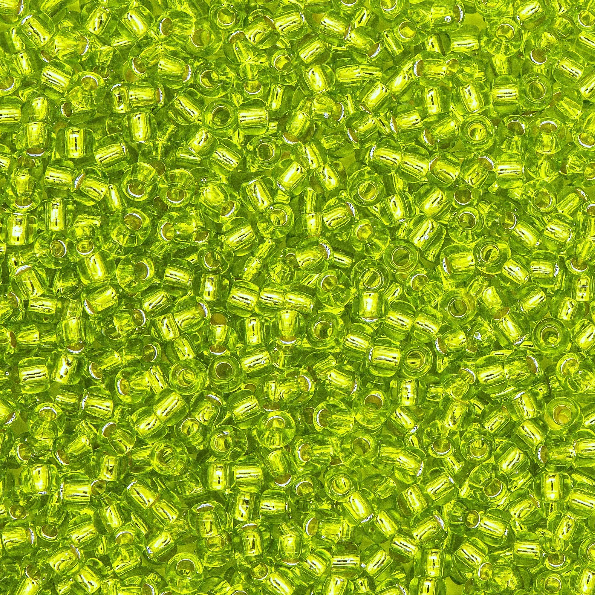 Японский бисер TOHO оттенок №24 Silver-Lined Lime Green (Зелёный лайм) - прозрачный с внутренним серебрением, зеленый.