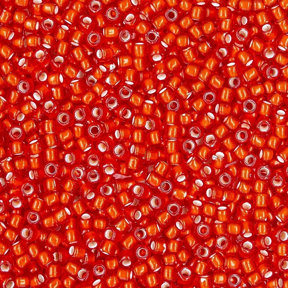 Японский бисер TOHO оттенок №25F Silver-Lined Frosted Light Siam Ruby (Светлый Сиамский рубин) - прозрачный матовый с внутренним серебрением, красный.