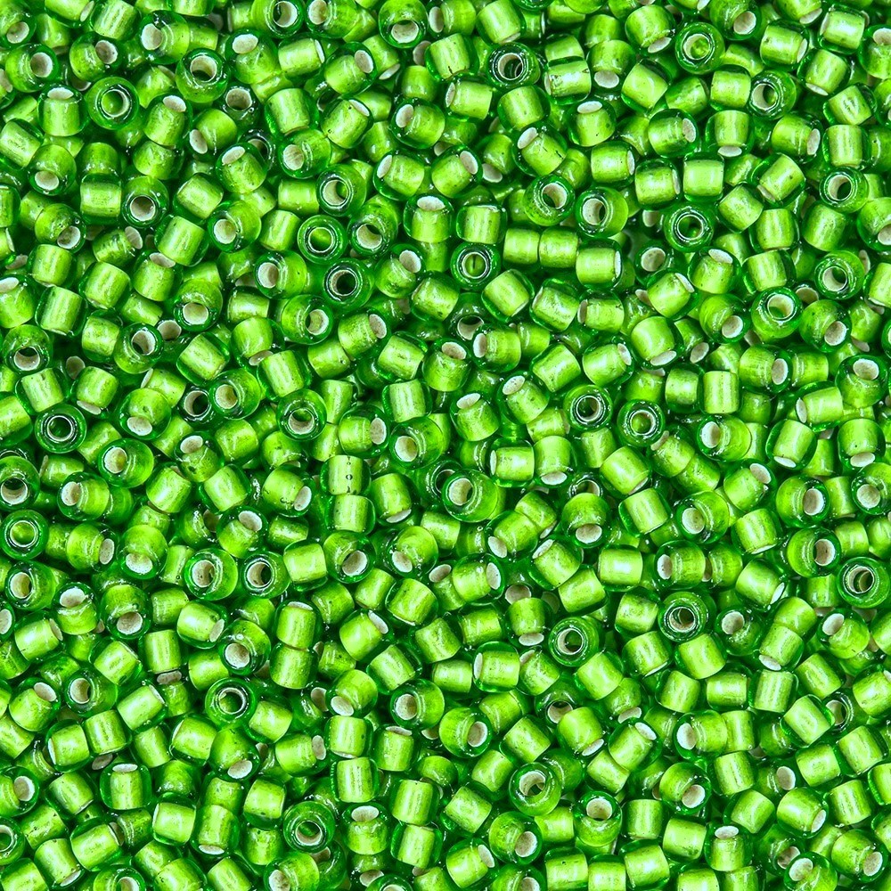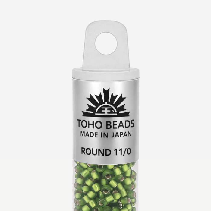 Японский бисер TOHO оттенок №27F Silver-Lined Frosted Peridot (Перидот) - с внутренним серебрением, прозрачный матовый, светло-зеленый.