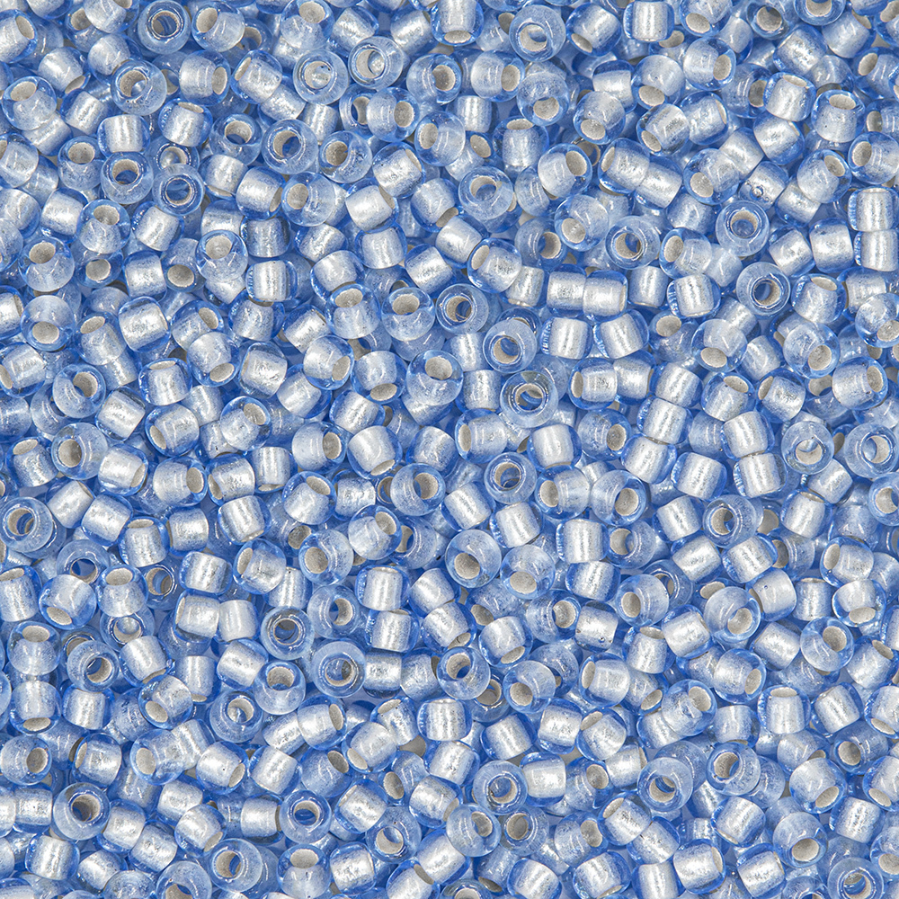Японский бисер TOHO оттенок №33F Silver-Lined Frosted Light Sapphire (Светлый сапфир) - с внутренним серебрением, прозрачный матовый, светло-синий.