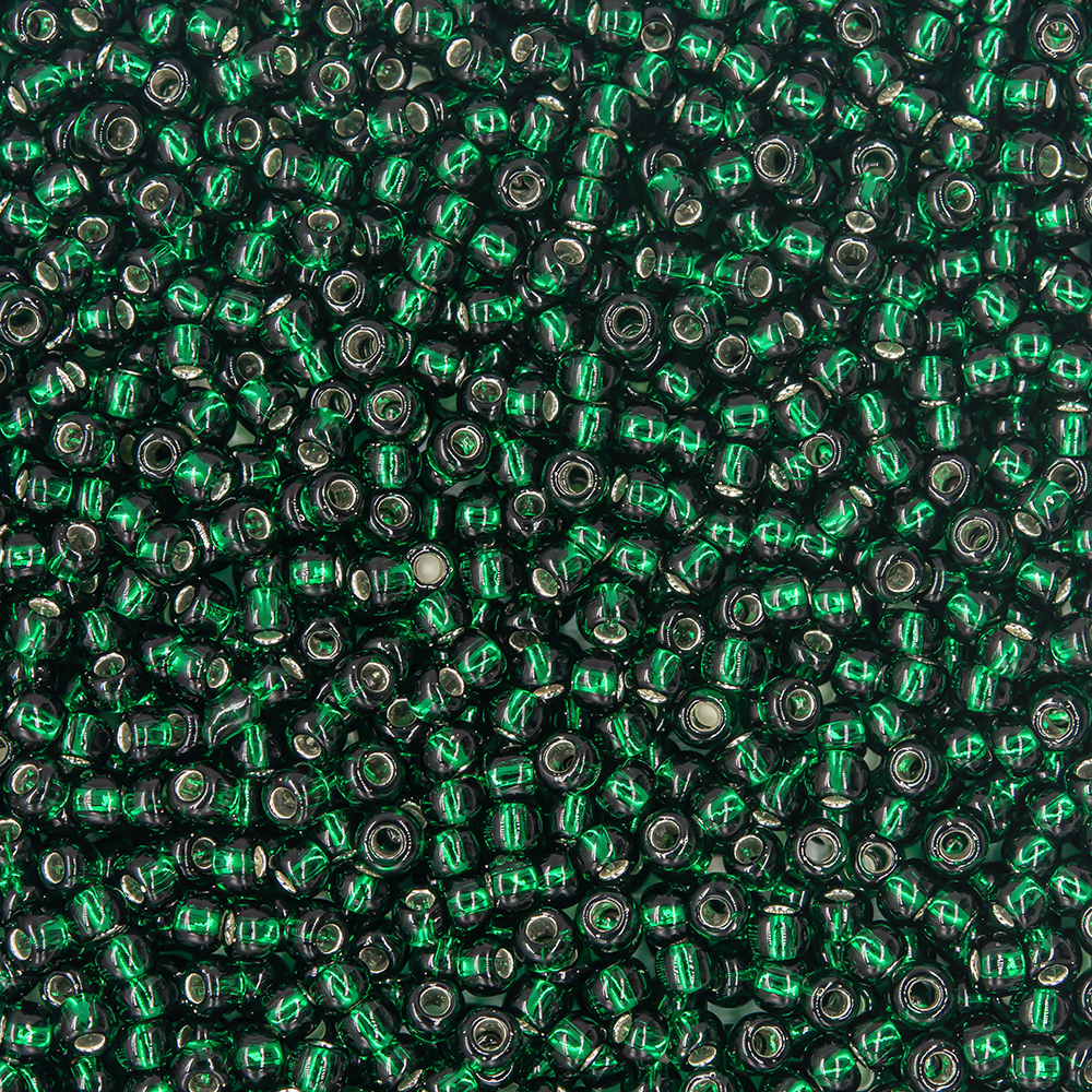 Японский бисер TOHO оттенок №36 Silver-Lined Green Emerald (Зеленый изумруд) - с внутренним серебрением, прозрачный, зеленый.