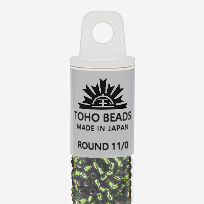 Японский бисер TOHO оттенок №37 Silver-Lined Olivine (Оливин) - прозрачный с внутренним серебрением, зеленый.
