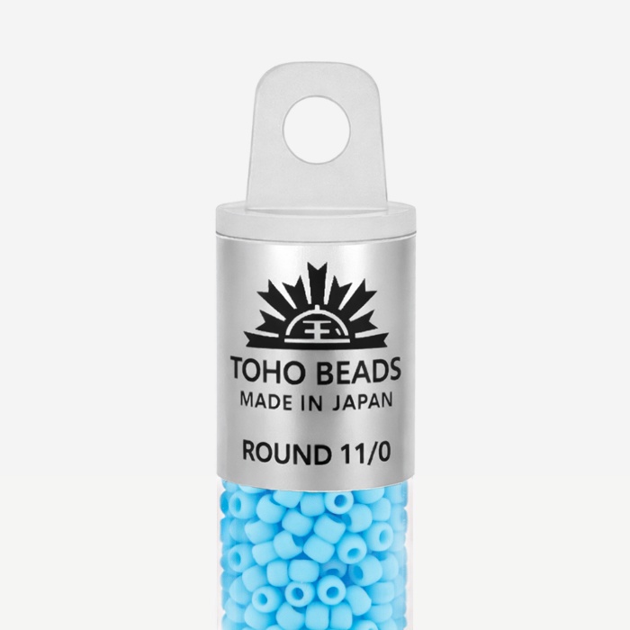 Японский бисер TOHO оттенок №43F Opaque Frosted Blue Turquoise (Голубая бирюза) - непрозрачный матовый, голубой.