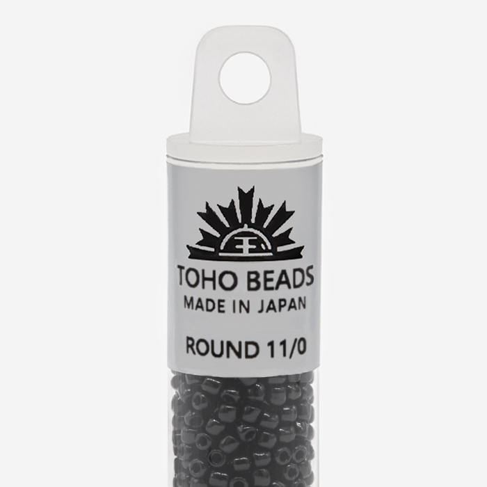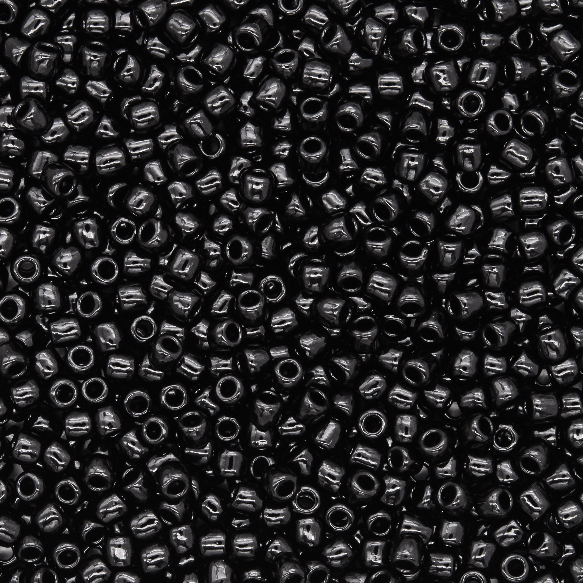 Японский бисер TOHO оттенок №49 Opaque Jet (Черный янтарь) - непрозрачный глянцевый, черный.