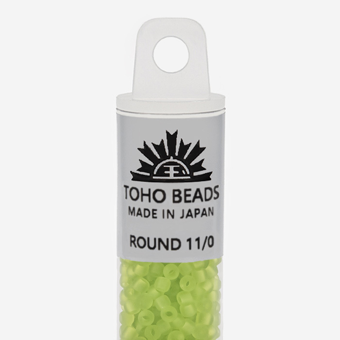 Японский бисер TOHO оттенок №4F Transparent Frosted Lime Green (Зеленый лайм) - прозрачный матовый, зеленый.