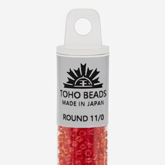 Японский бисер TOHO оттенок №5 Transparent Light Siam Ruby (Светлый сиамский рубин) - прозрачный, красный.