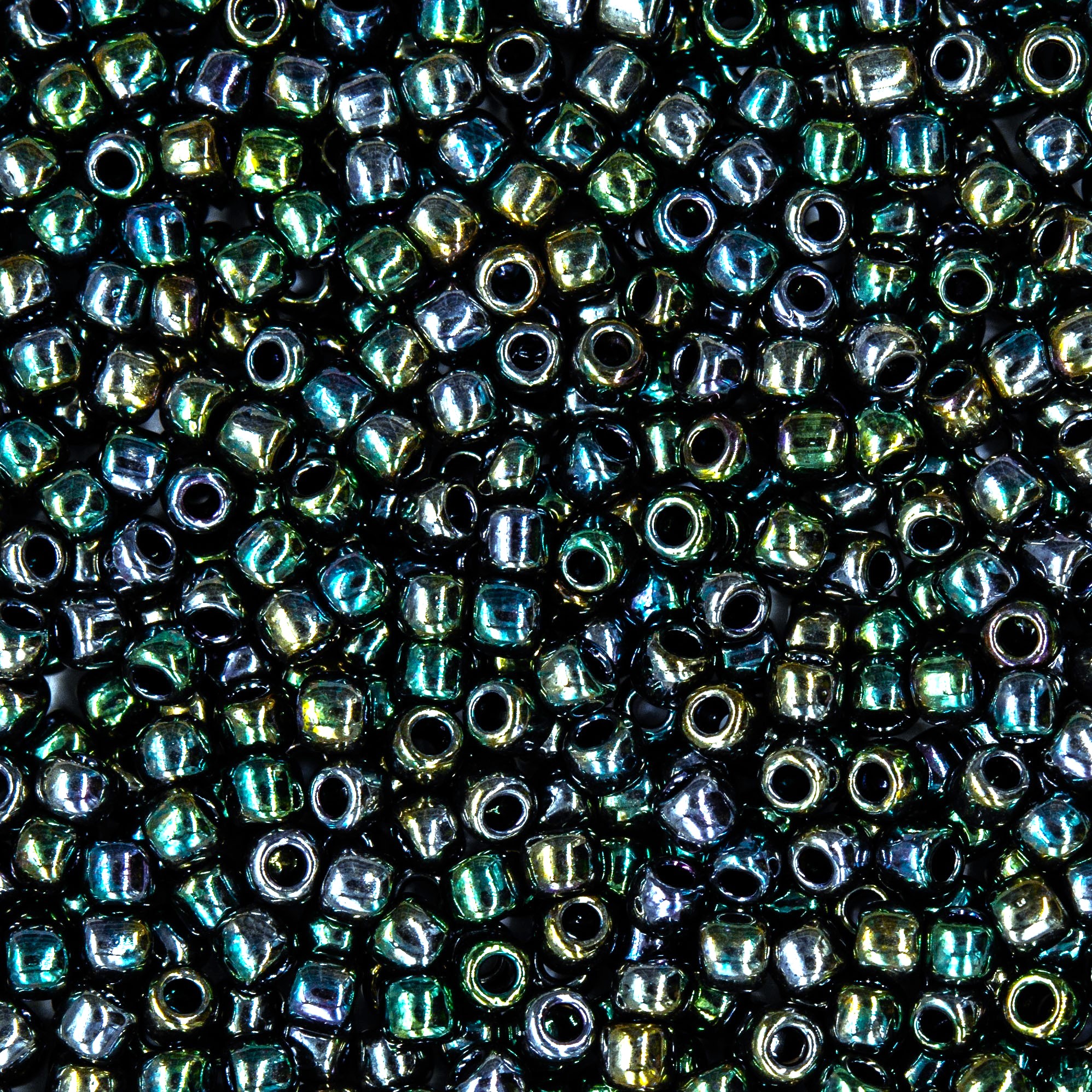 Японский бисер TOHO оттенок №506 Higher-Metallic June Bug (Бронзовка) - металлизированный, непрозрачный глянцевый, металлический зеленый.