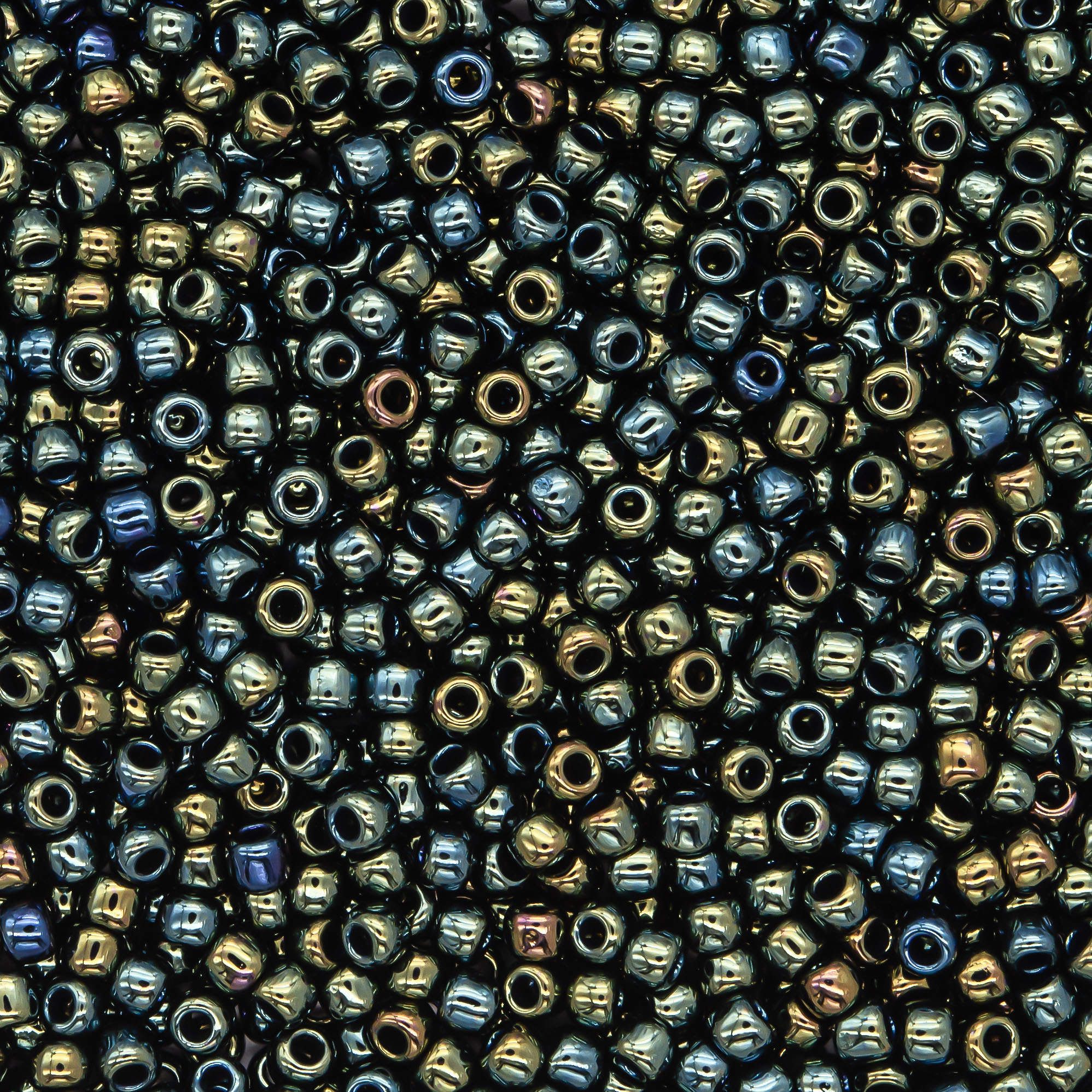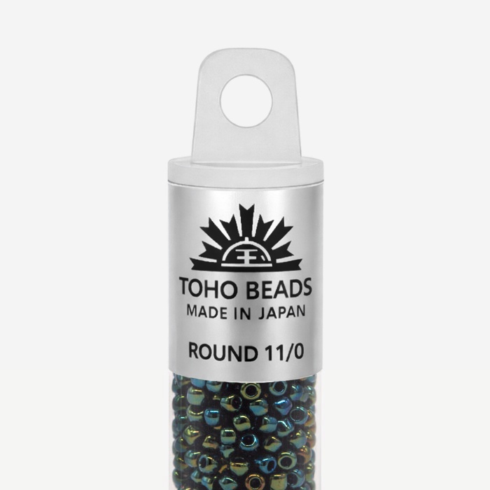 Японский бисер TOHO оттенок №84 Metallic Iris Green/Brown (Зеленый ирис/коричневый) - металлизированный, непрозрачный глянцевый, металлический зеленый.