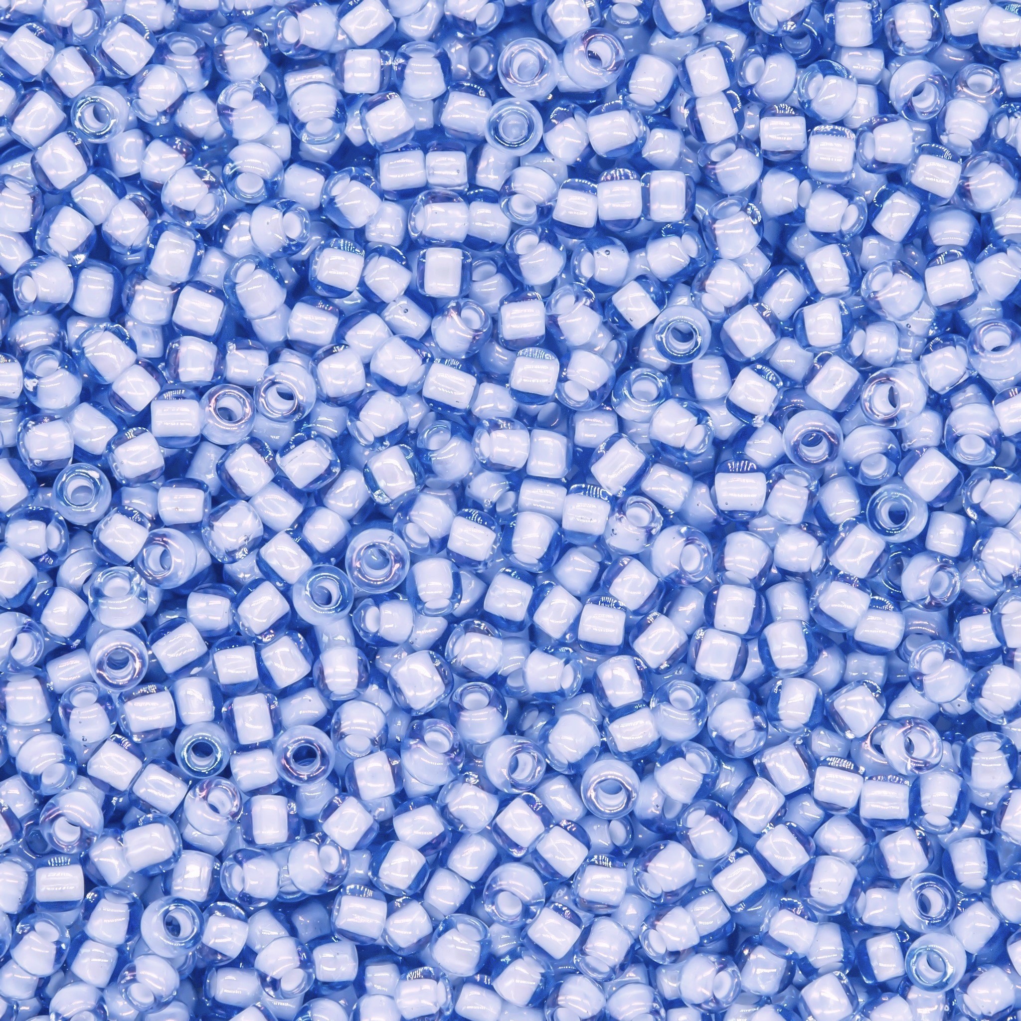 Японский бисер TOHO оттенок №933 Light Sapphire/ White (Светлый сапфир/ Белый) - окрашенный изнутри прозрачный, голубой.