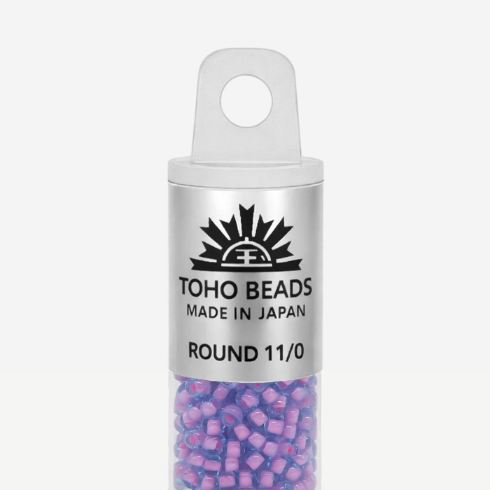 Японский бисер TOHO оттенок №937 Aqua/ Bubble Gum Pink (Вода/ Розовая жвачка) - окрашенный изнутри прозрачный, сиреневый.
