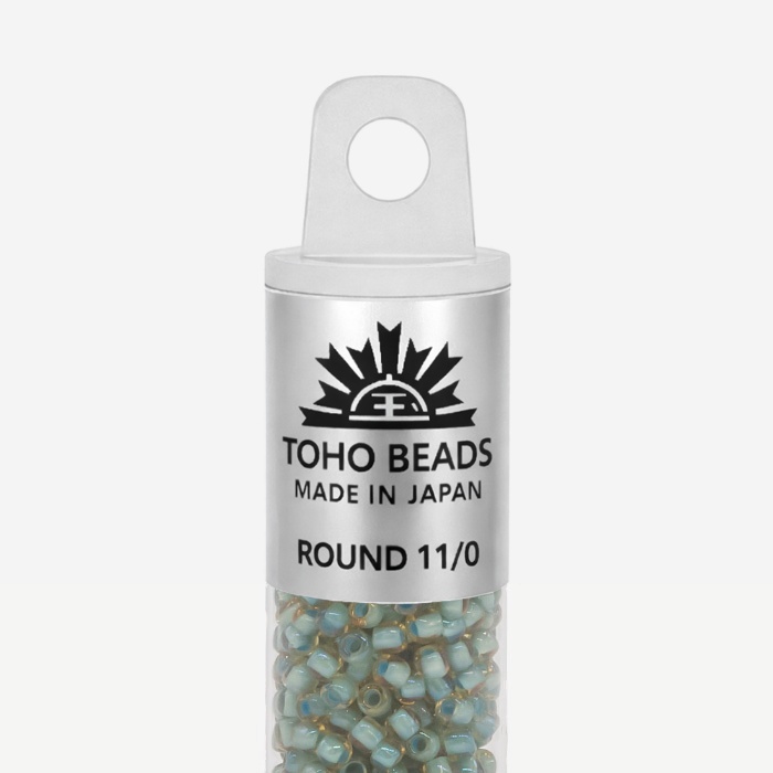 Японский бисер TOHO оттенок №952 Rainbow Light Topaz/ Sea Foam (Радужный светлый топаз/ Морская пена) - окрашенный изнутри прозрачный, зеленый.
