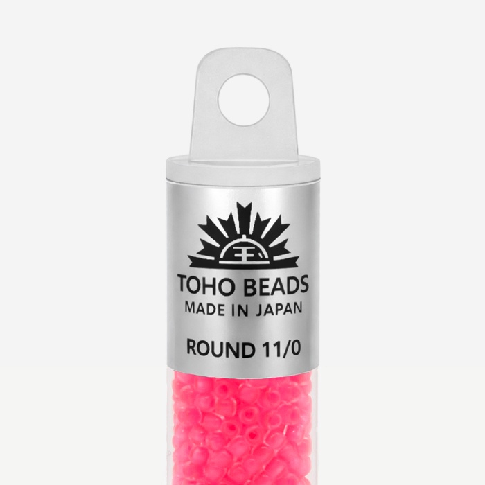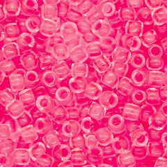 Японский бисер TOHO оттенок №971 Matte Crystal/ Neon Pink (Матовый кристалл/ Неоновый розовый) - окрашенный изнутри прозрачный, ярко-розовый.