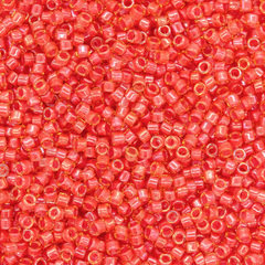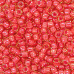 Японский бисер TOHO оттенок №979 Luminous Light Topaz/ Neon Pink (Светлый топаз/ Неоновый розовый) - окрашенный изнутри глянцевый, красный.