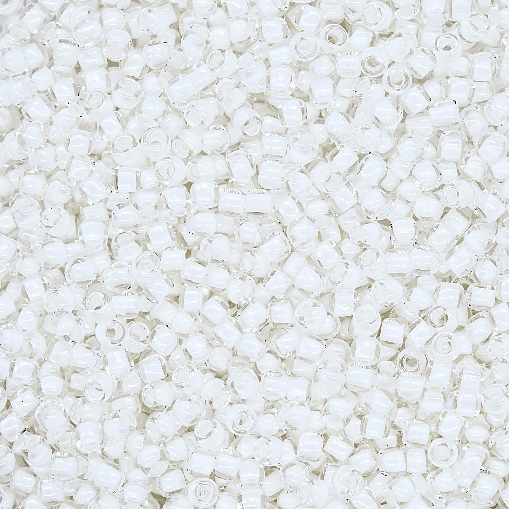 Японский бисер TOHO оттенок №981 Crystal/ Snow (Кристалл/ Снег) - окрашенный изнутри прозрачный, белый.