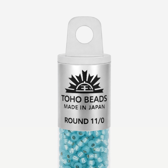 Японский бисер TOHO оттенок №PF2117 Permanent Finish Silver-Lined Milky Aqua (Опаловый, вода) - с внутренним серебрением, полупрозрачный глянцевый, устойчивое финишное покрытие, голубой.