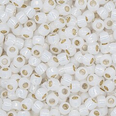 Японский бисер TOHO оттенок №2100 Silver-Lined Milky White (Опаловый, белый) - с внутренним серебрением, непрозрачный глянцевый, белый.