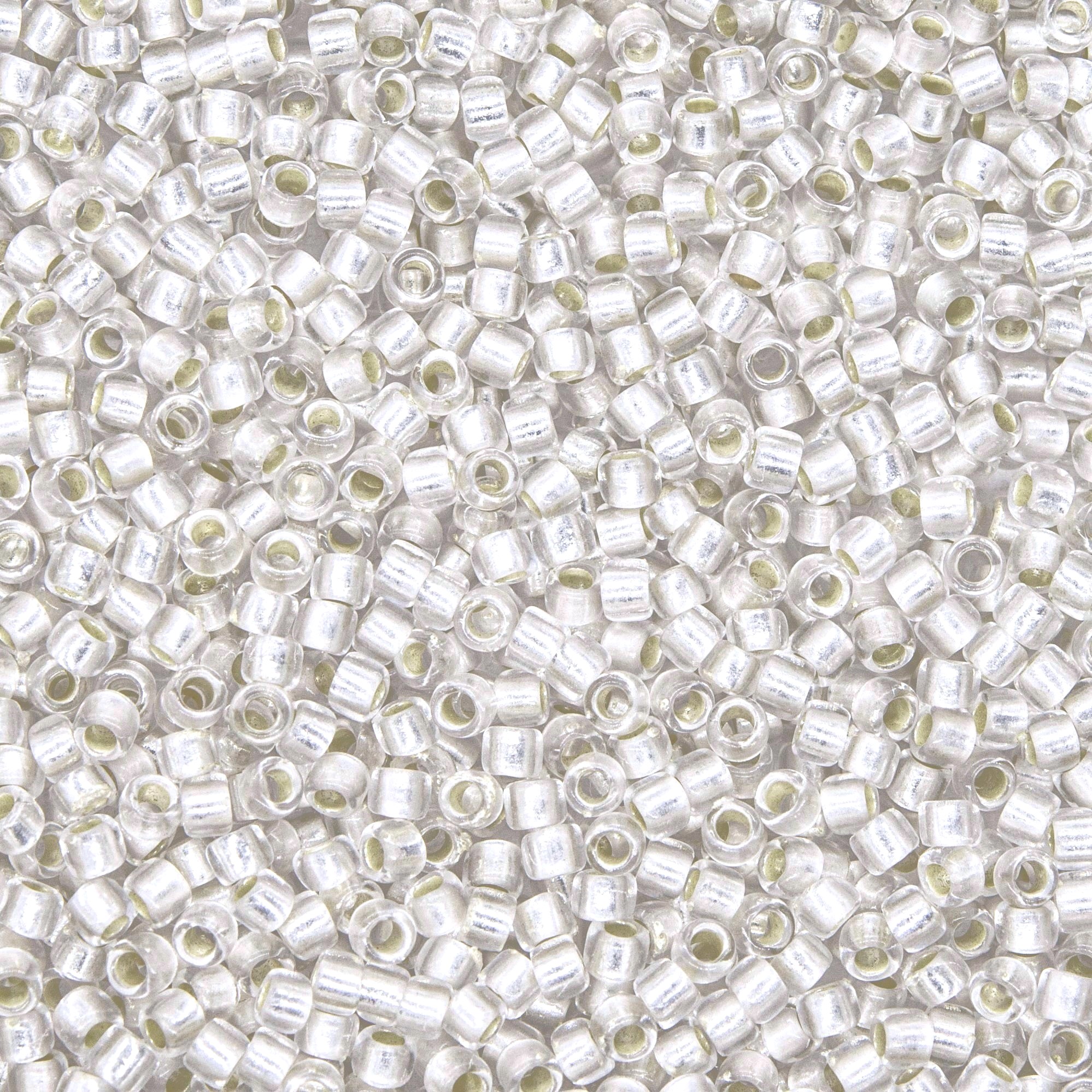Японский бисер TOHO оттенок №21F Silver-Lined Frosted Crystal (Кристалл) - с внутренним серебрением, прозрачный матовый, белый.