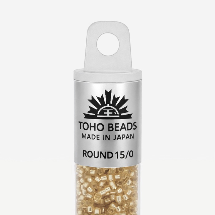 Японский бисер TOHO оттенок №22F Silver-Lined Frosted Light Yellow Amber (Светлый желтый янтарь) - с внутренним серебрением, прозрачный матовый, золотой.