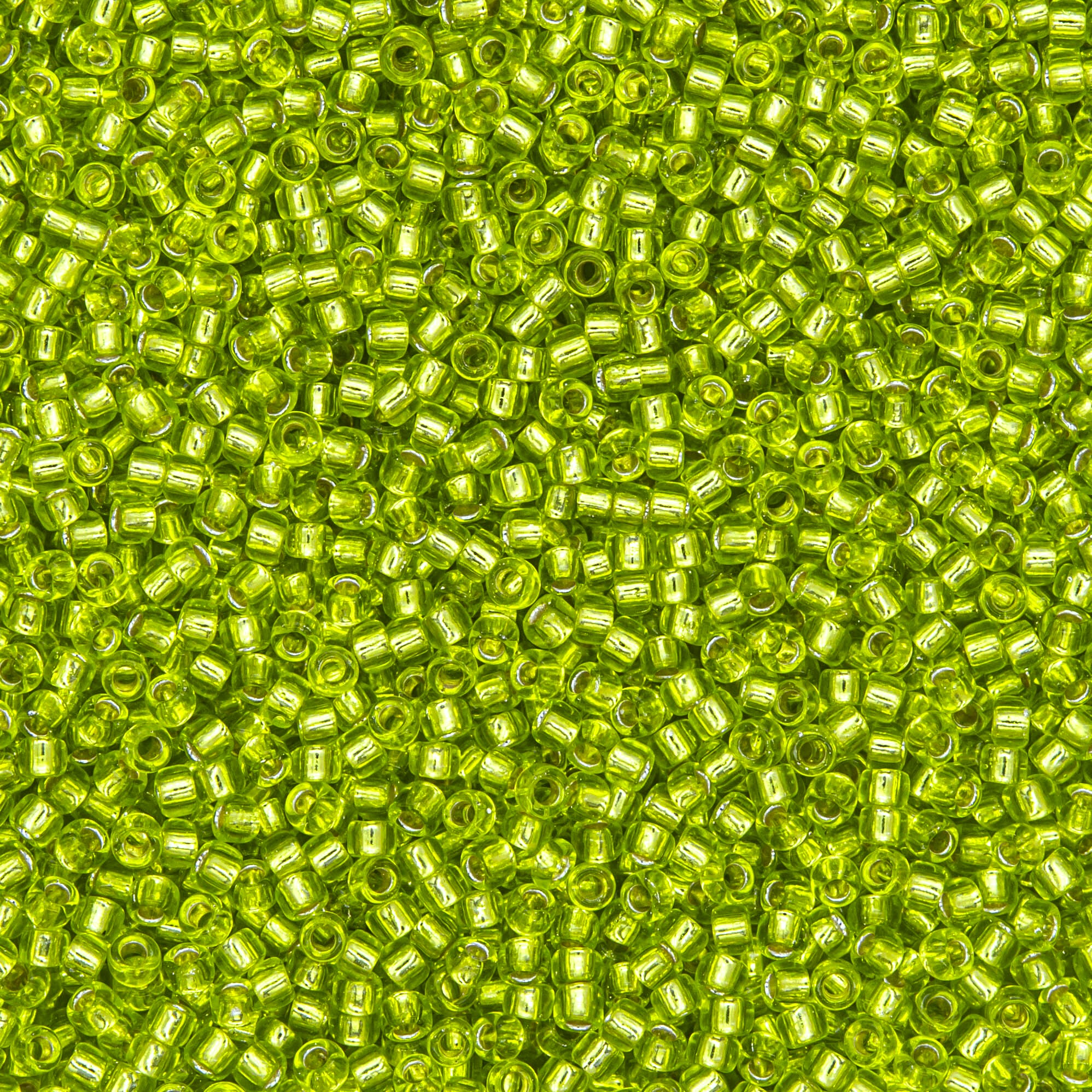 Японский бисер TOHO оттенок №24 Silver-Lined Lime Green (Зелёный лайм) - прозрачный с внутренним серебрением, зеленый.