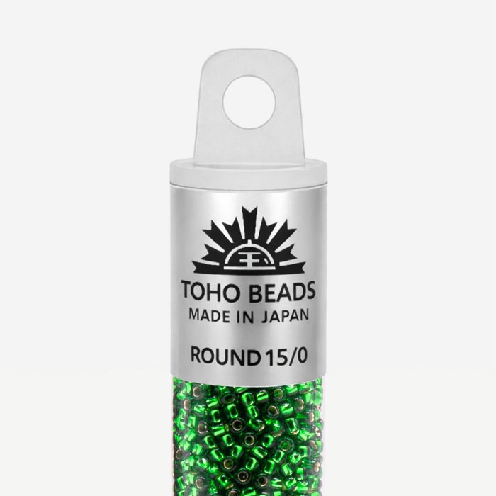 Японский бисер TOHO оттенок №27B Silver-Lined Grass Green (Травянисто-зеленый) - с внутренним серебрением, прозрачный, зеленый.
