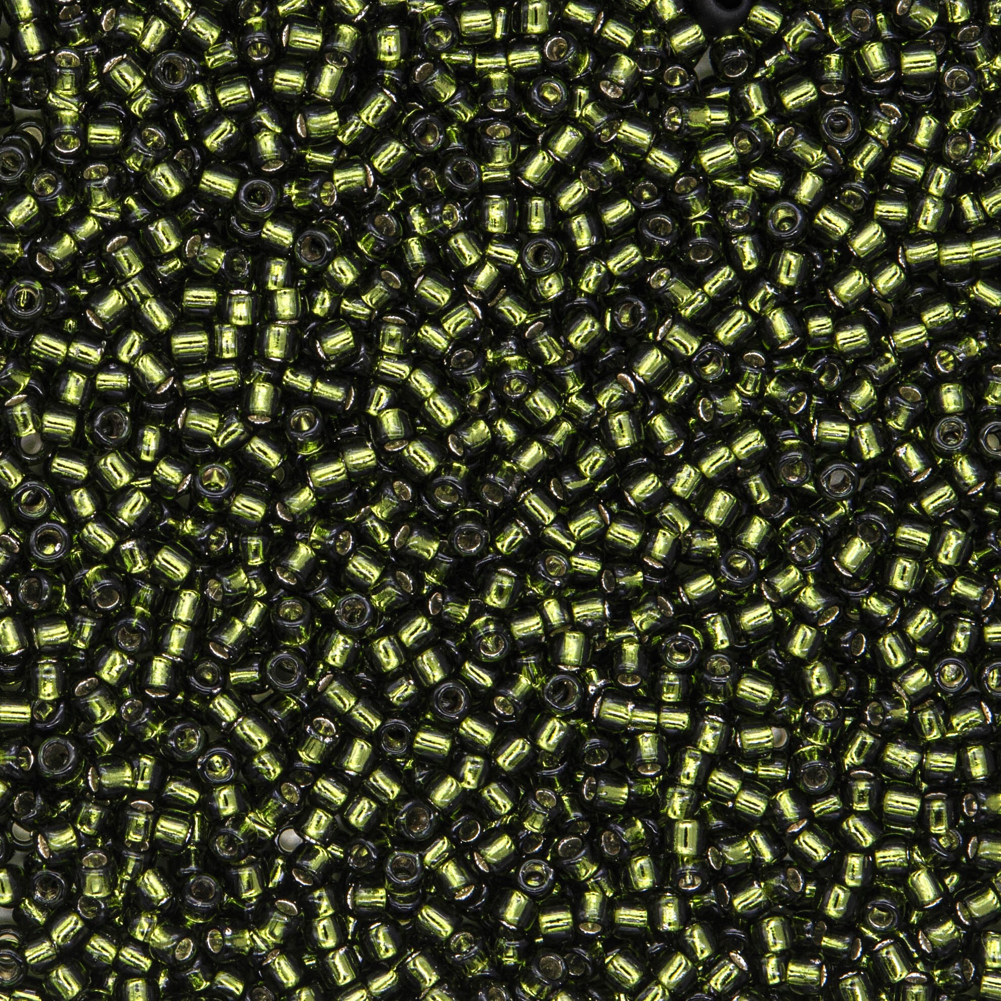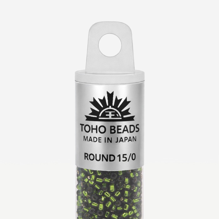 Японский бисер TOHO оттенок №37 Silver-Lined Olivine (Оливин) - прозрачный с внутренним серебрением, зеленый.