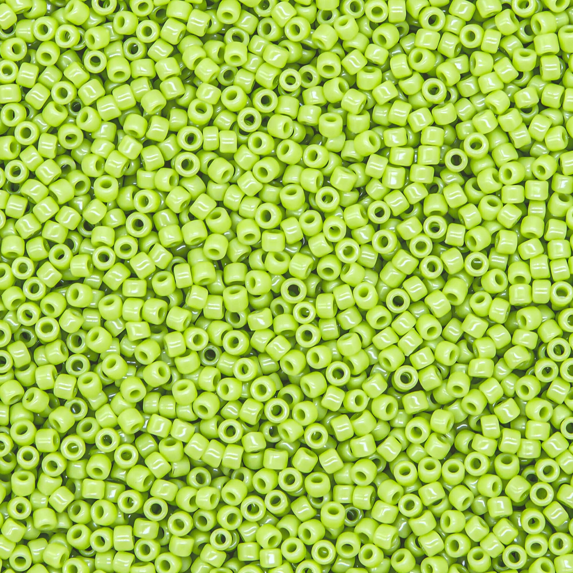 Японский бисер TOHO оттенок №44 Opaque Sour Apple (Кислое яблоко) - непрозрачный глянцевый, зелёный.