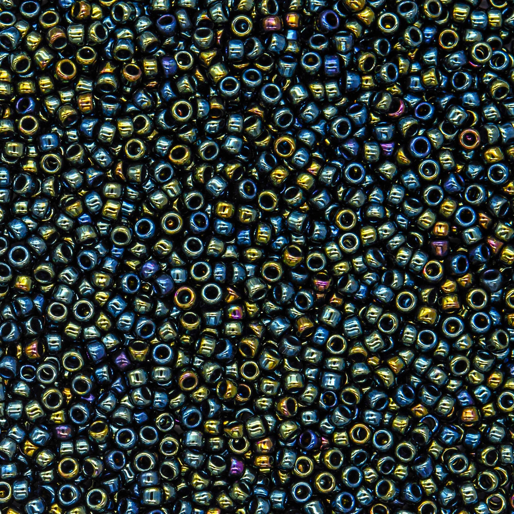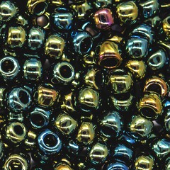 Японский бисер TOHO оттенок №84 Metallic Iris Green/Brown (Зеленый ирис/коричневый) - металлизированный, непрозрачный глянцевый, металлический зеленый.