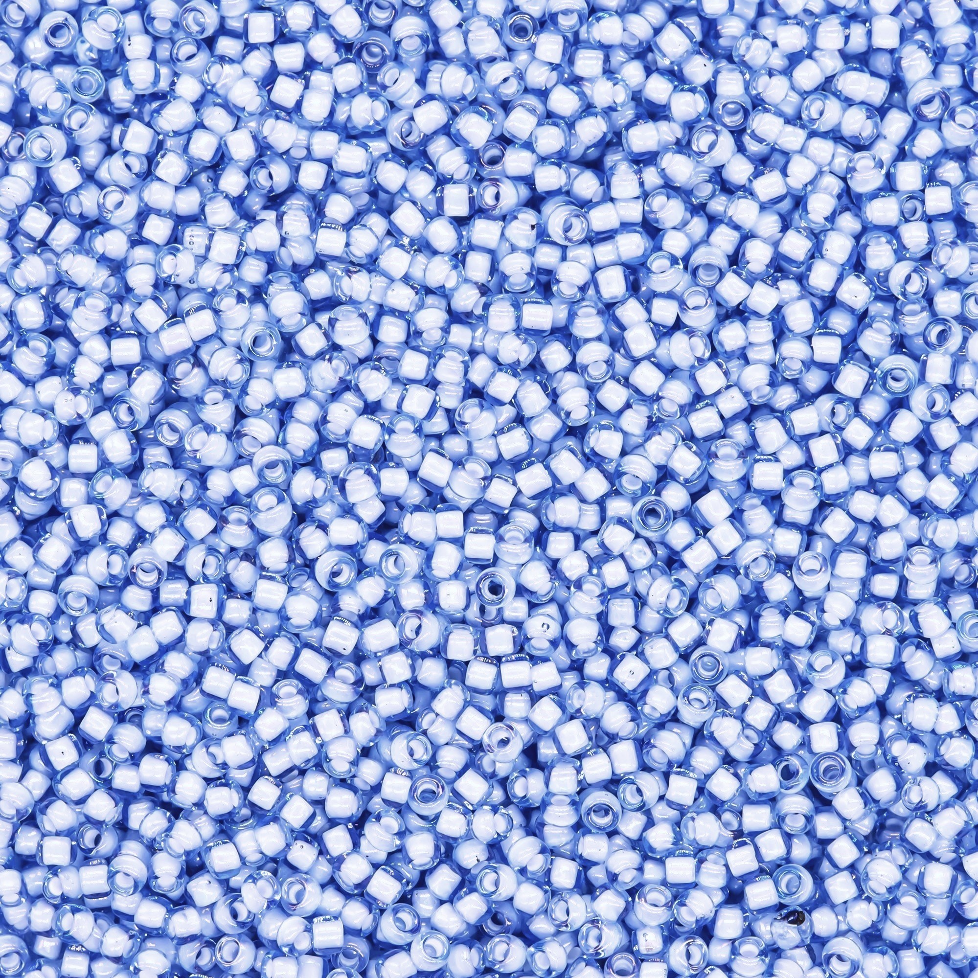Японский бисер TOHO оттенок №933 Light Sapphire/ White (Светлый сапфир/ Белый) - окрашенный изнутри прозрачный, голубой.