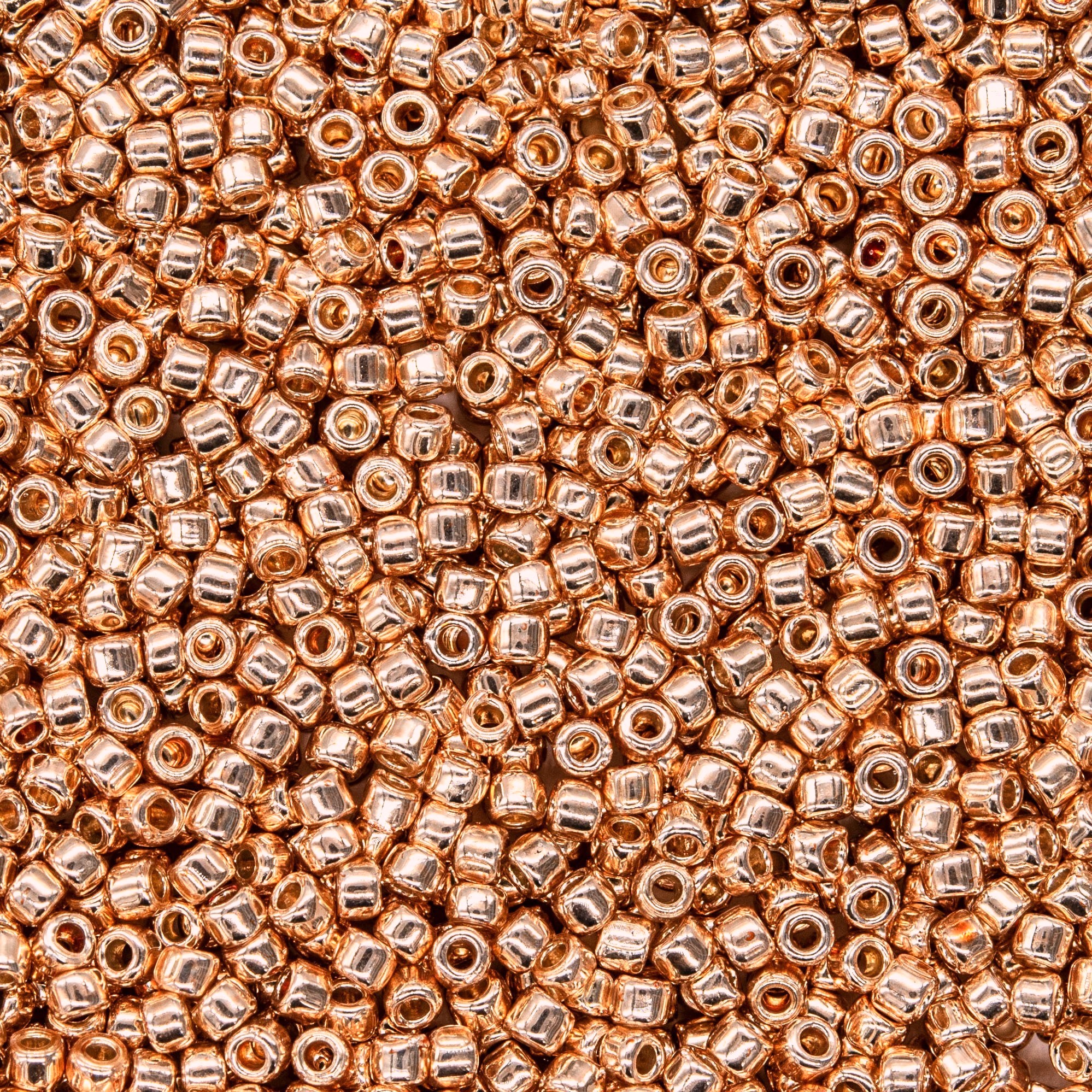 Японский бисер TOHO оттенок №PF551 Permanent Finish Galvanized Rose Gold (Гальванизированный, розовое золото) - непрозрачный глянцевый с металлическим блеском, устойчивое финишное покрытие, розовое золото.