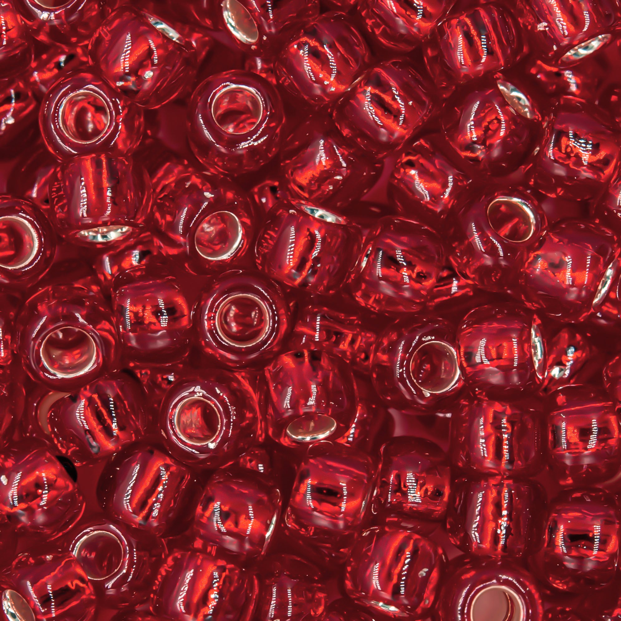 Японский бисер TOHO оттенок №25C Silver-Lined Ruby (Рубин) - прозрачный с внутренним серебрением, темно-красный.